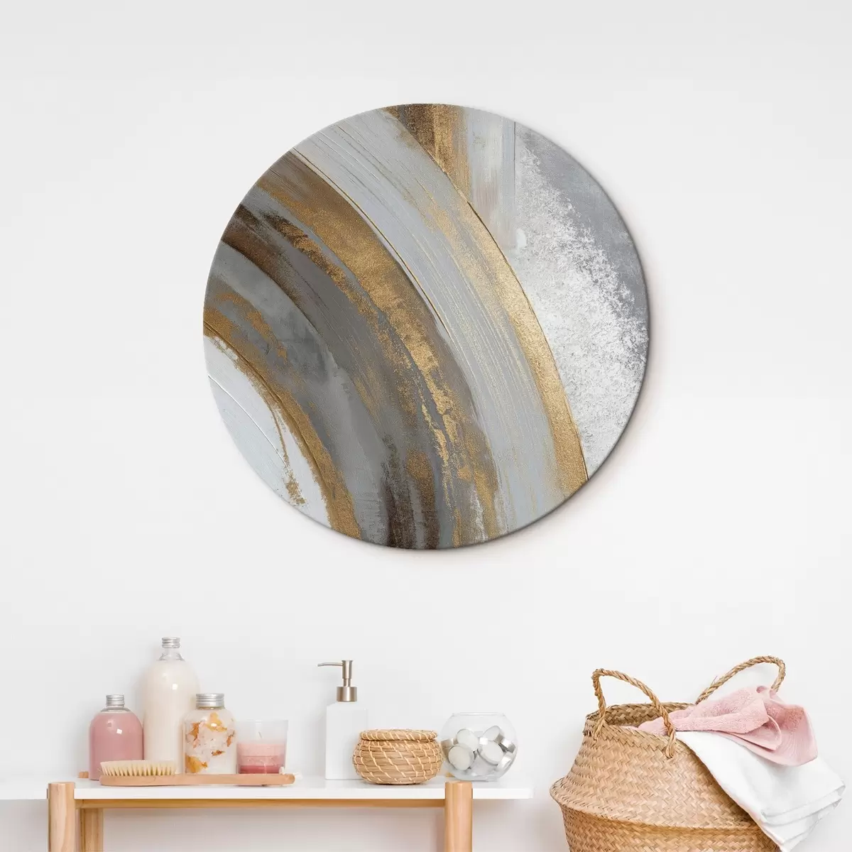 Picturi rotunde Semicercuri abstracte gri și galbene r45809