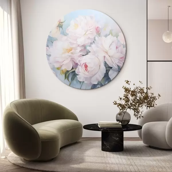 Picturi rotunde Bujori roz delicați pe un fundal albastru ca cerul Nr r45813