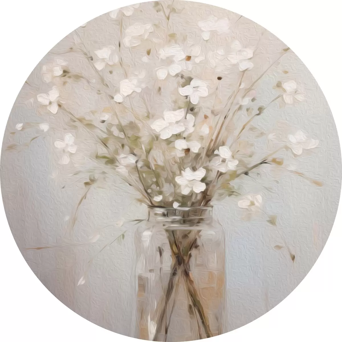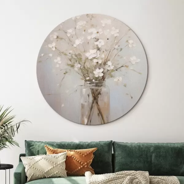 Picturi rotunde Un buchet de flori albe într-o vază de sticlă transparentă Nr r45814