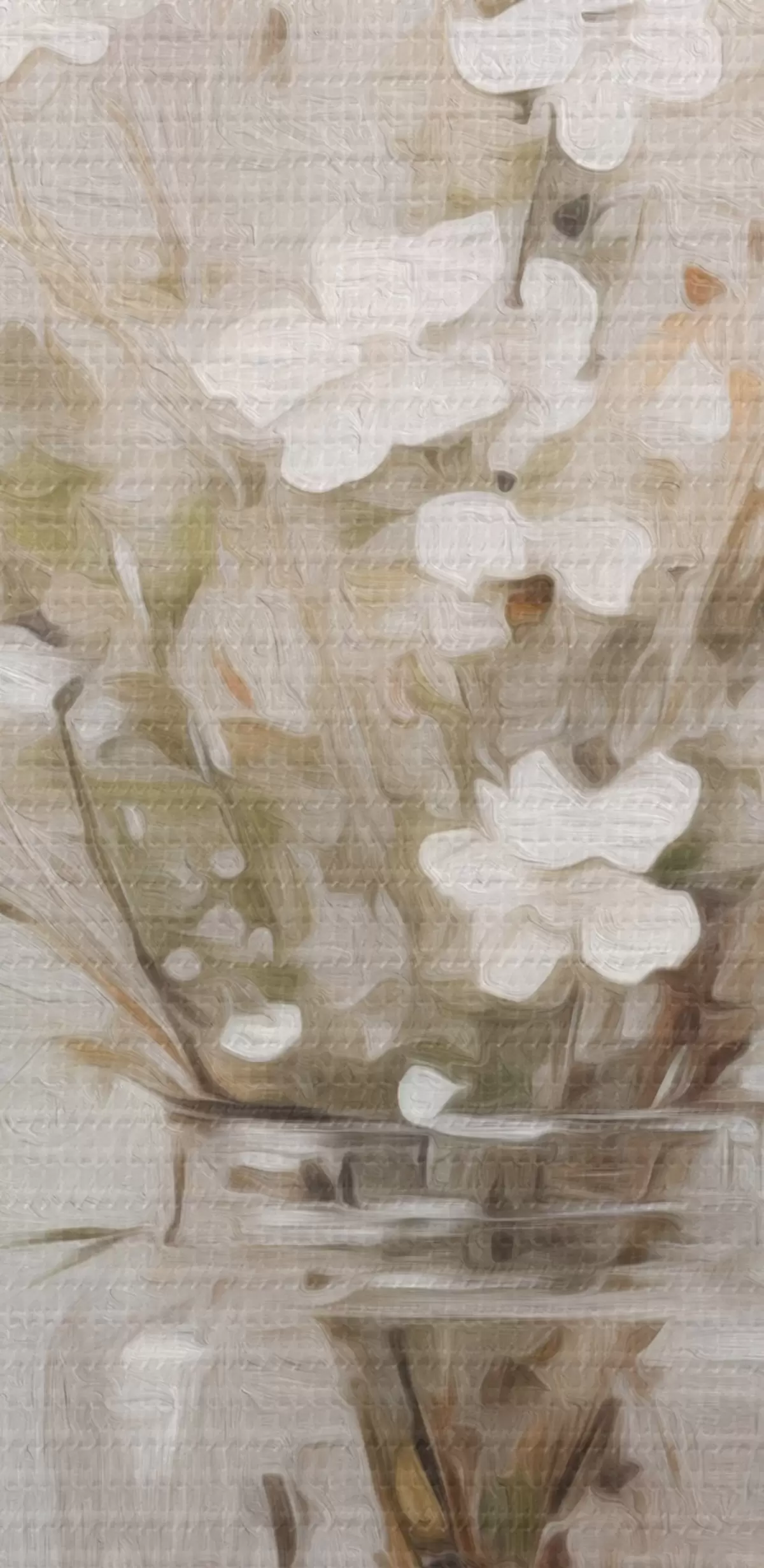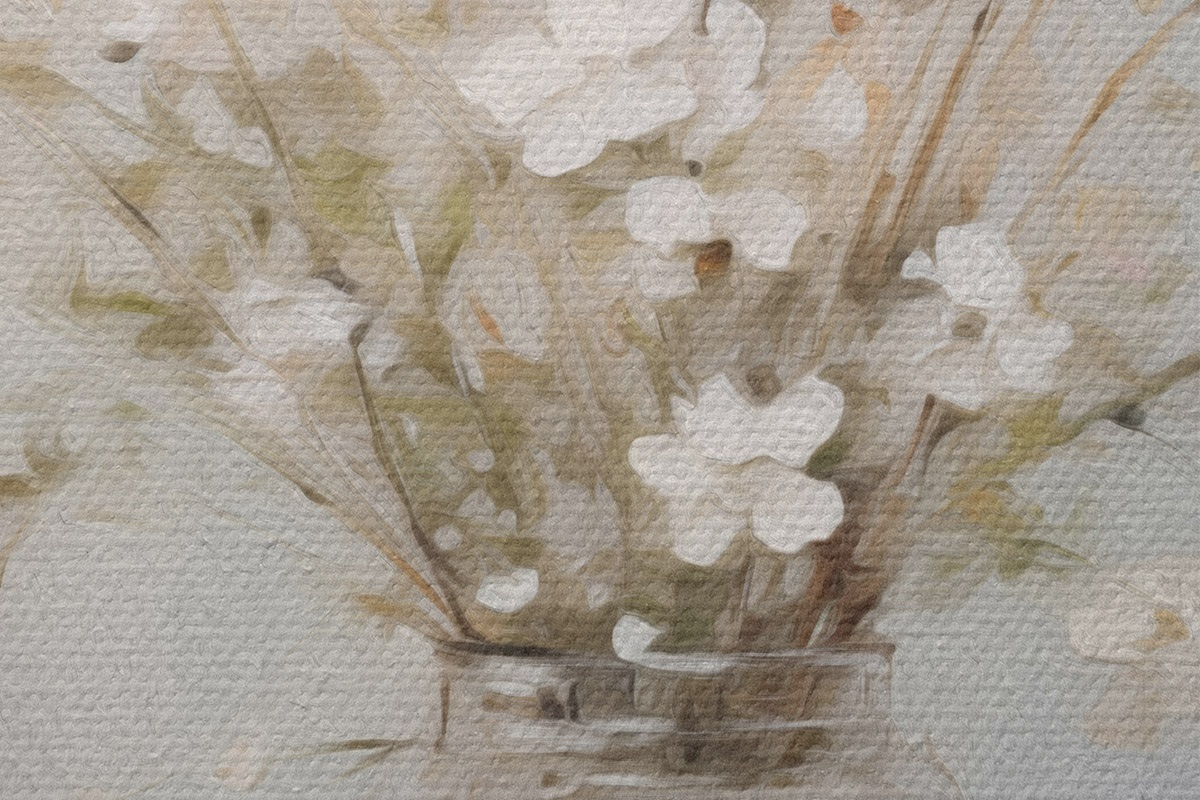 Țesătura fină a firelor de pe această pânză seamănă cu suprafața pânzelor artiștilor profesioniști.