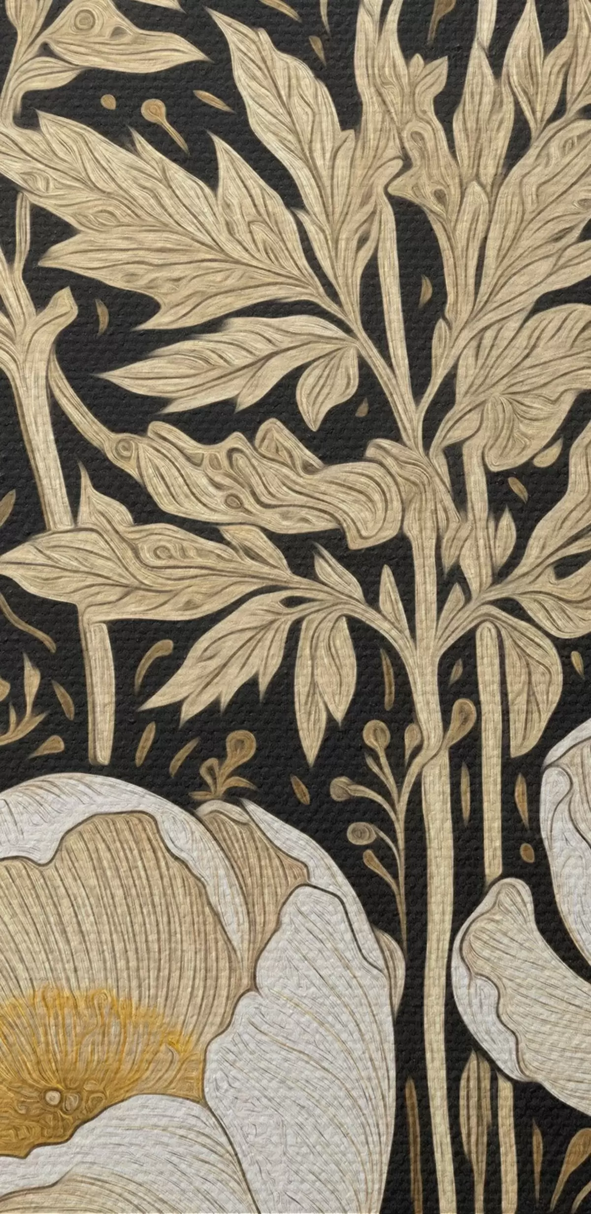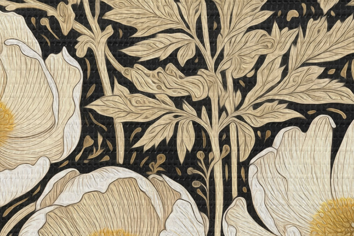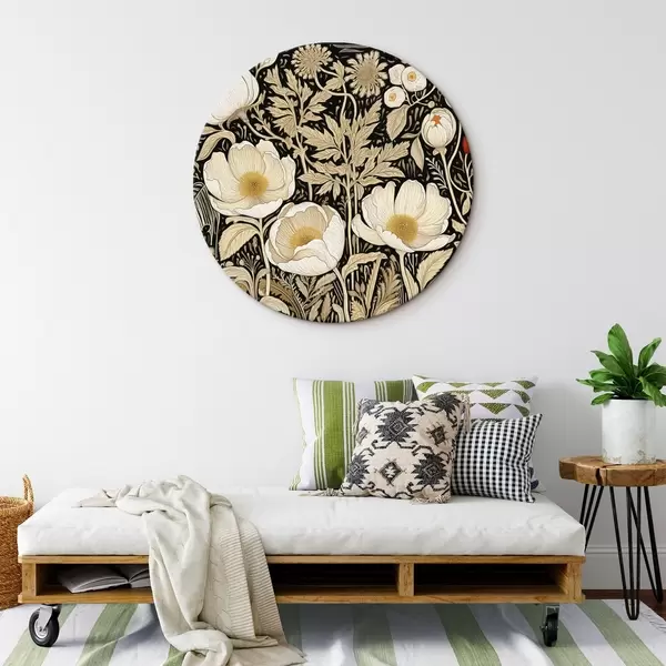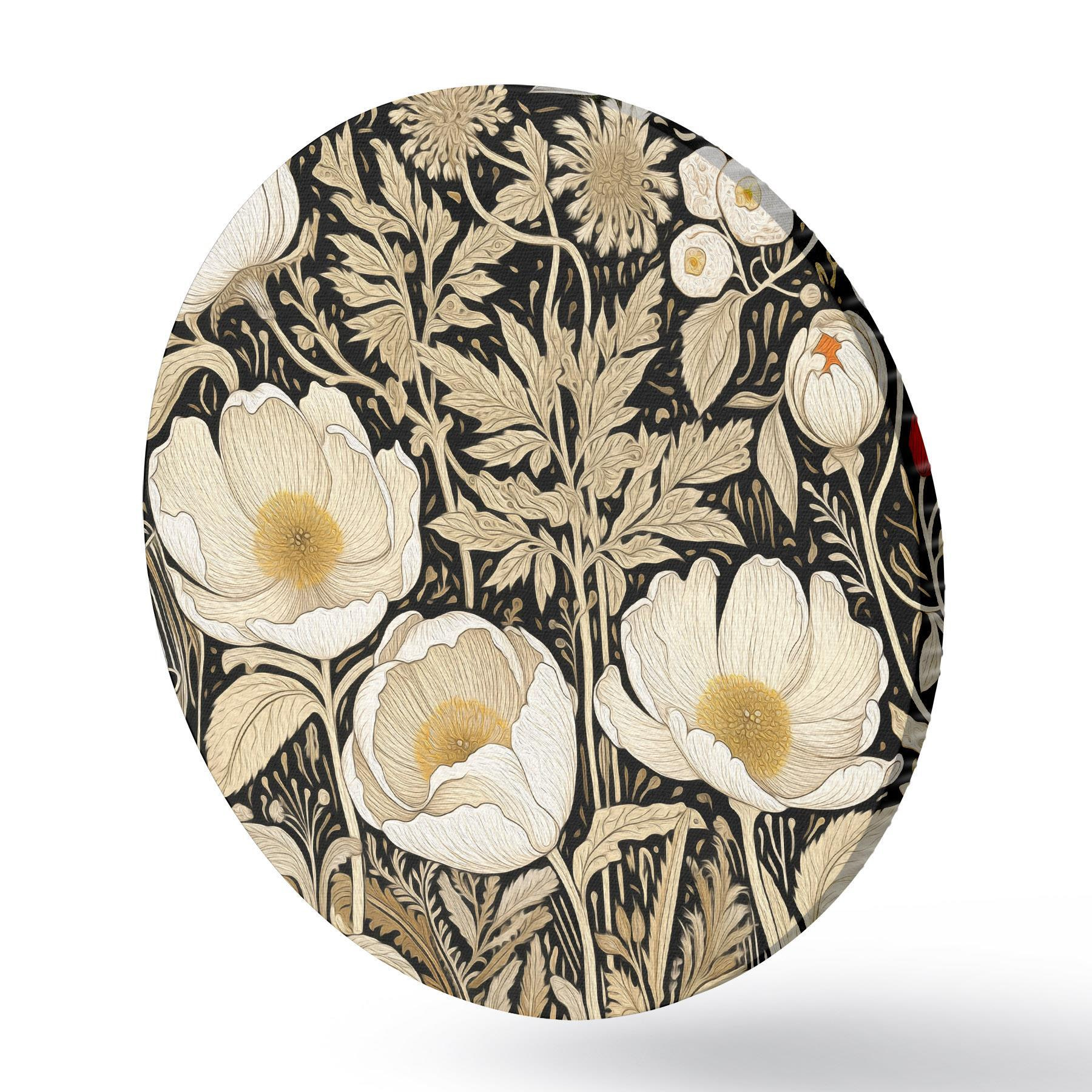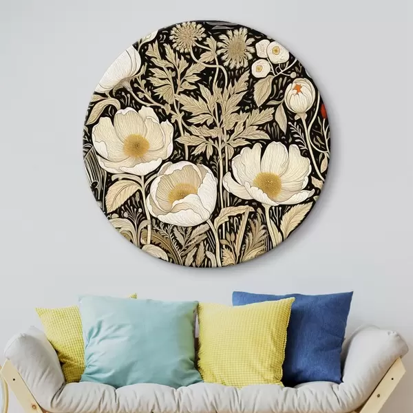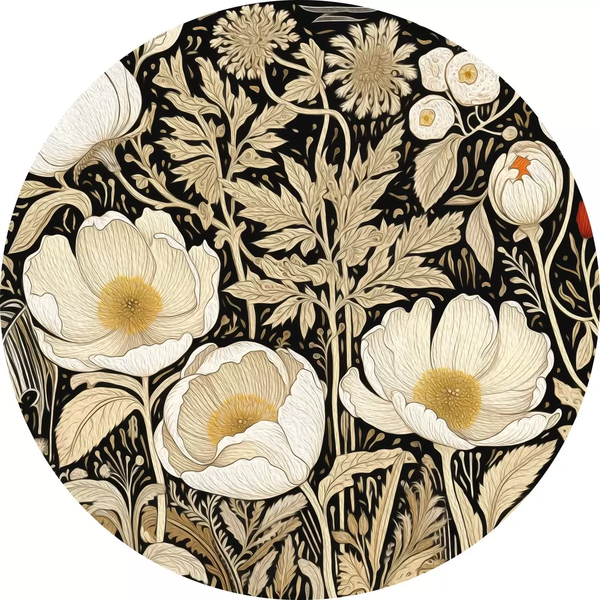 Picturi rotunde Flori crem și ierburi pe fundal negru Nr r45816