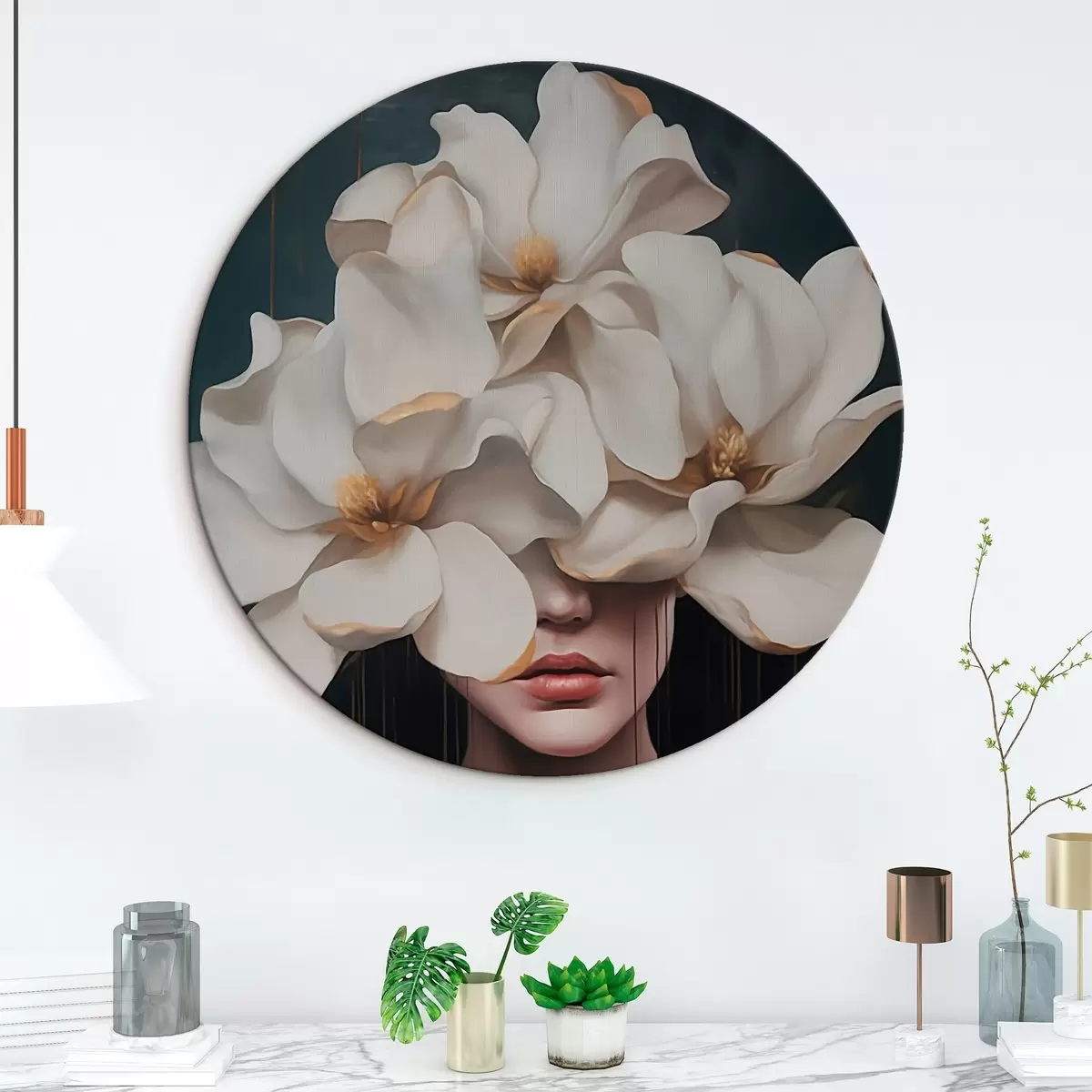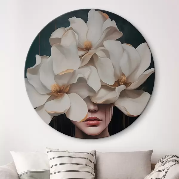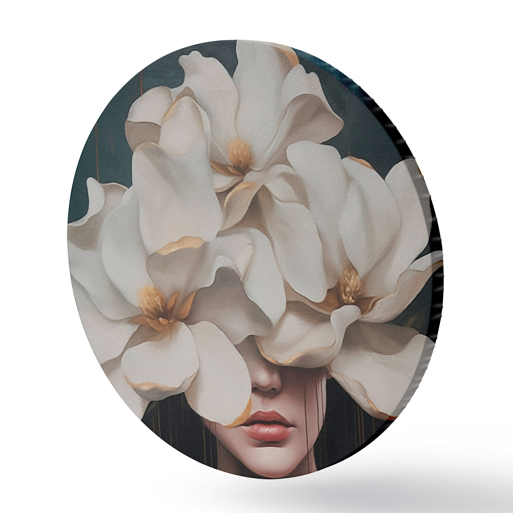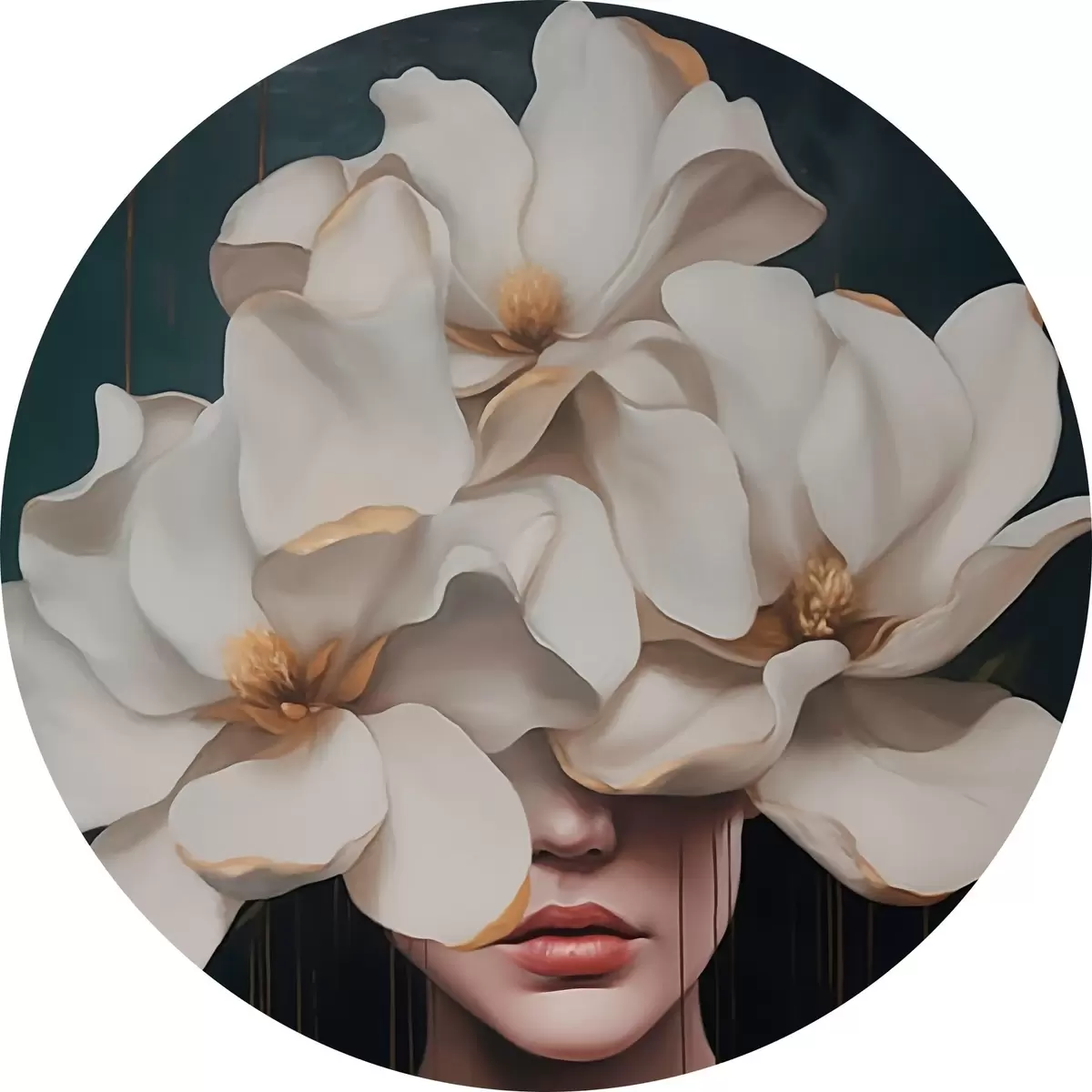 Picturi rotunde Femeie cu flori albe pe cap r45843