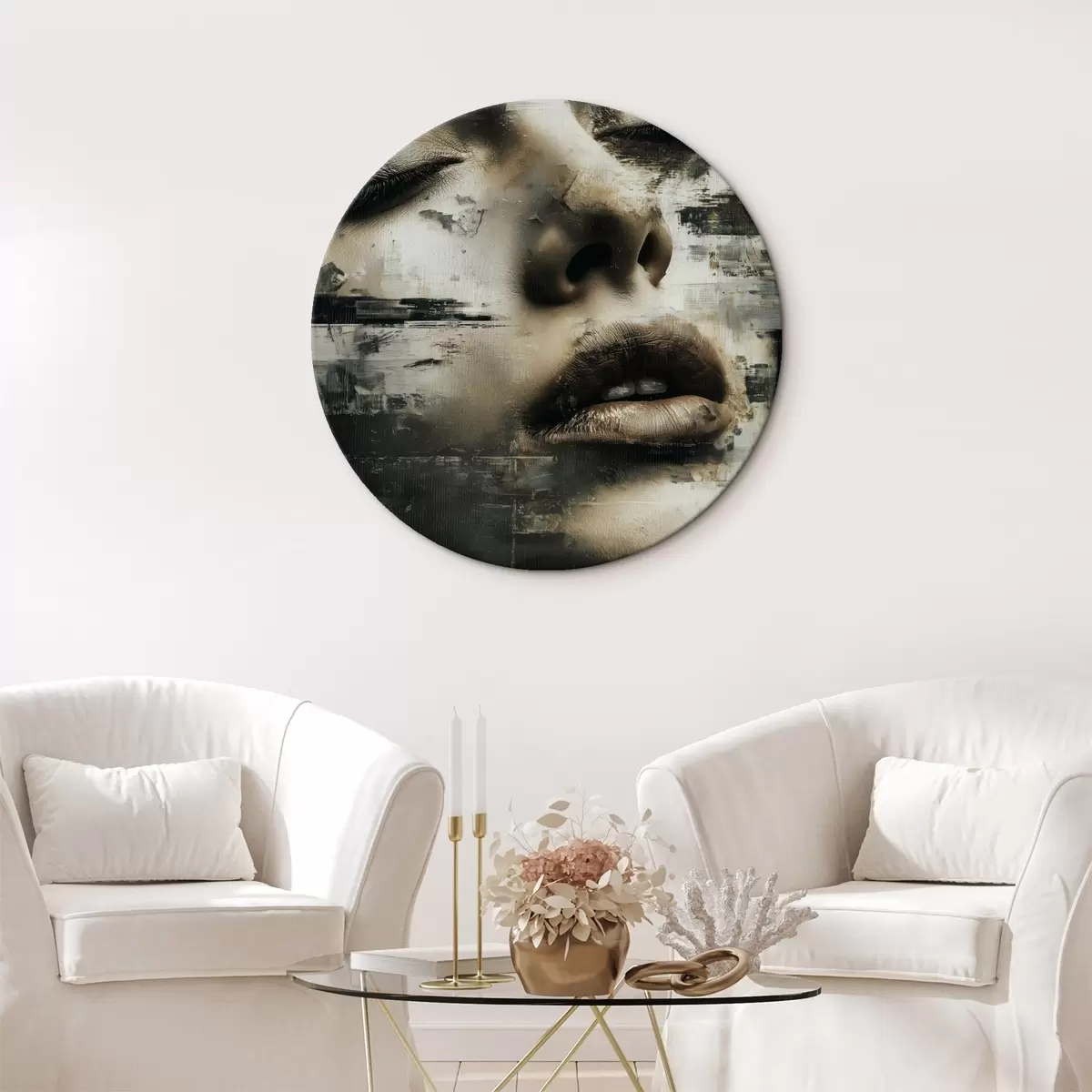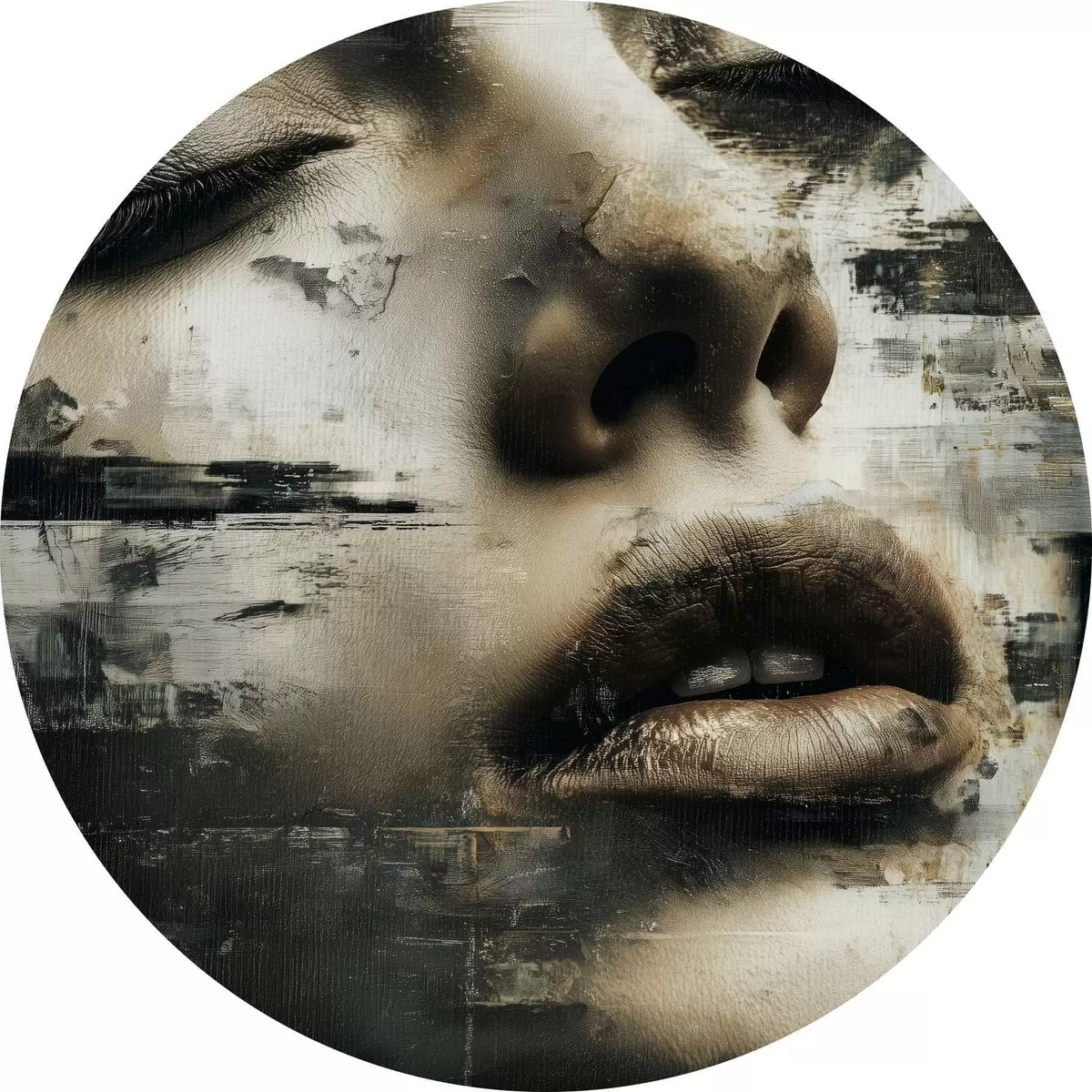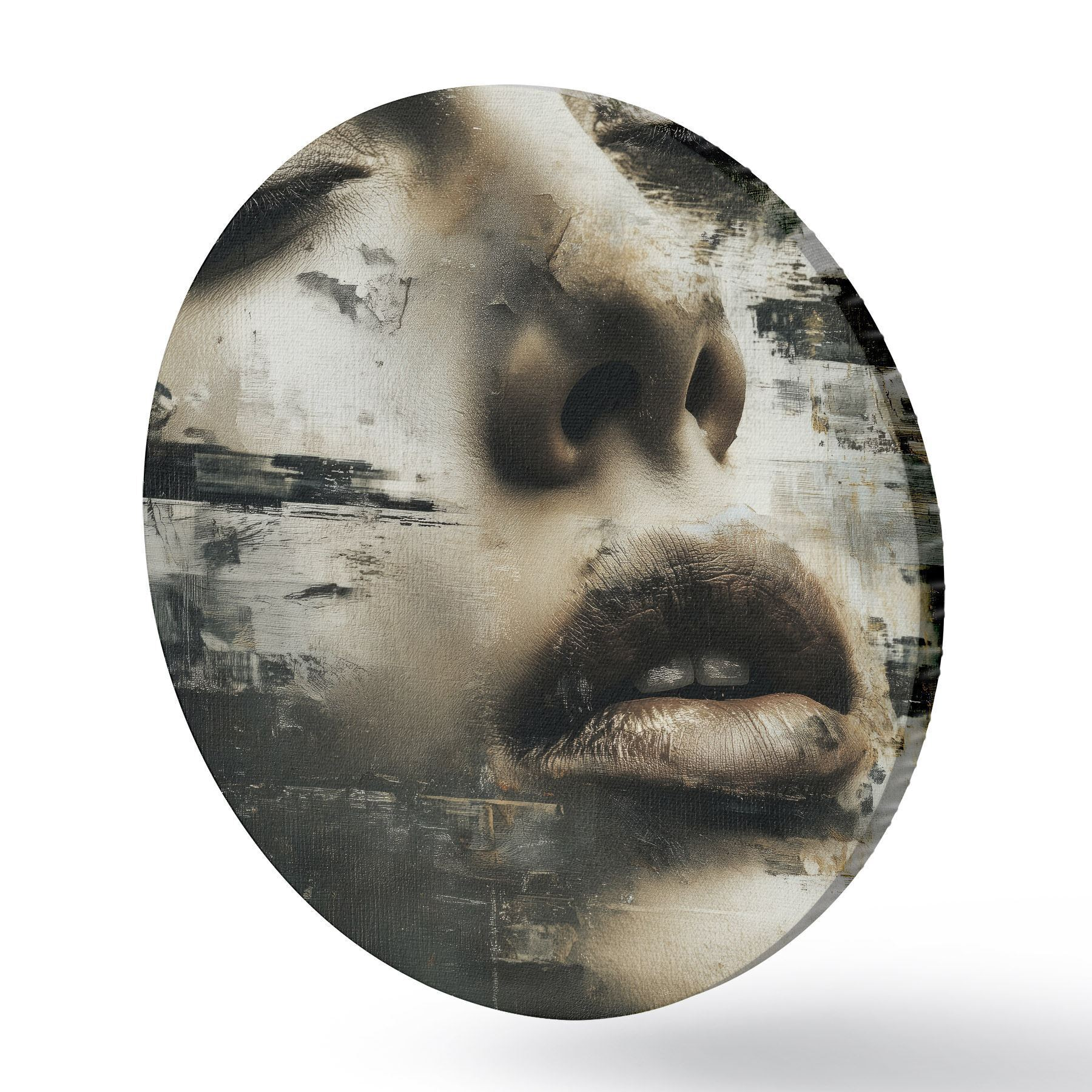 Picturi rotunde Portret abstract feminin cu efect glitch și texturi Nr r45873