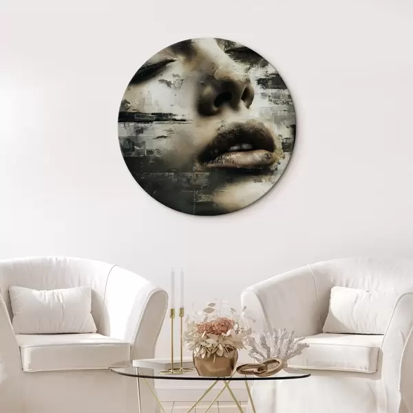 Picturi rotunde Portret abstract feminin cu efect glitch și texturi r45873