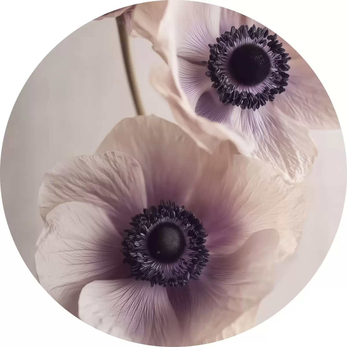 Picturi rotunde Anemone delicate cu centre întunecate, pastelate Nr r45875