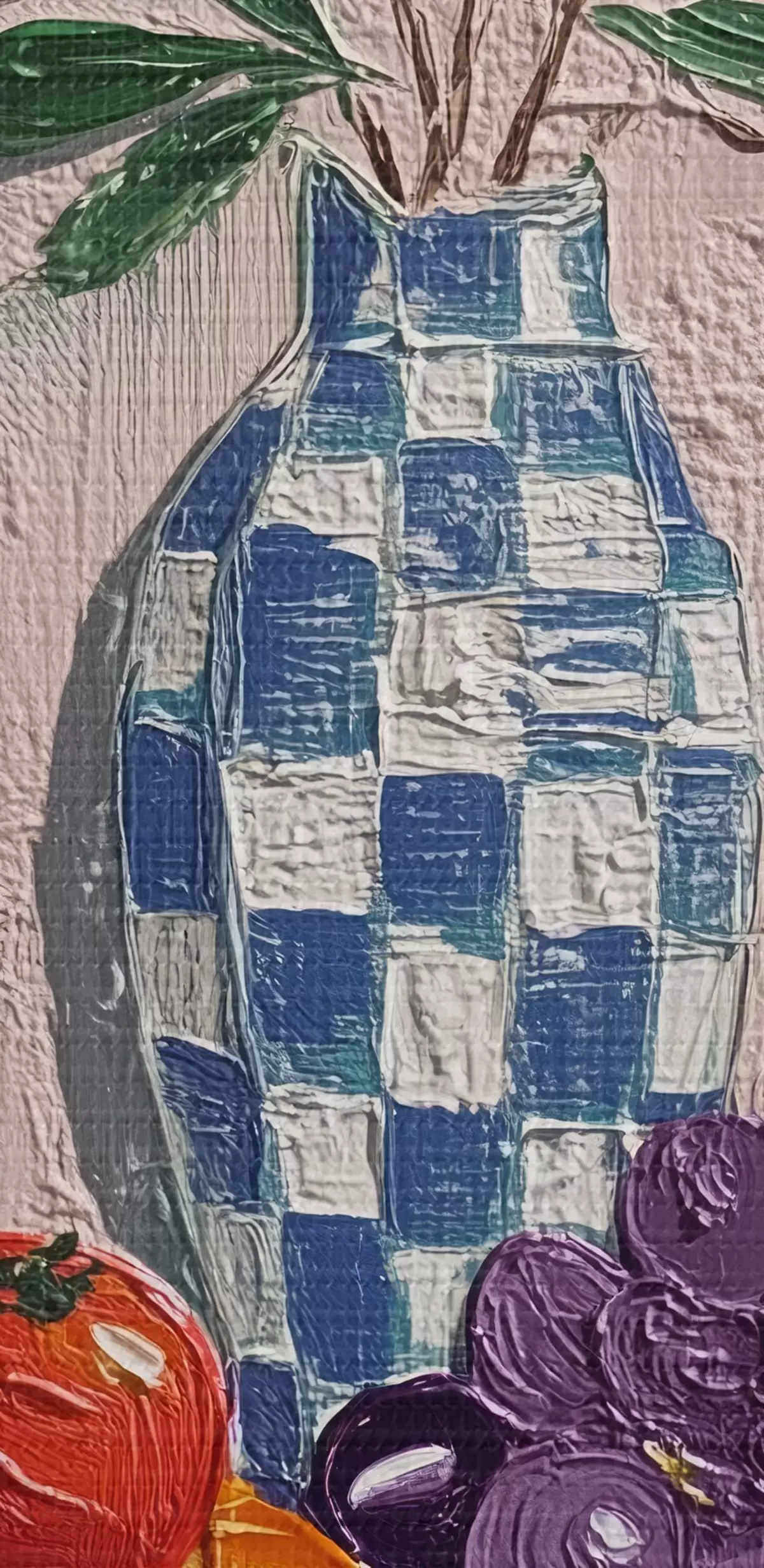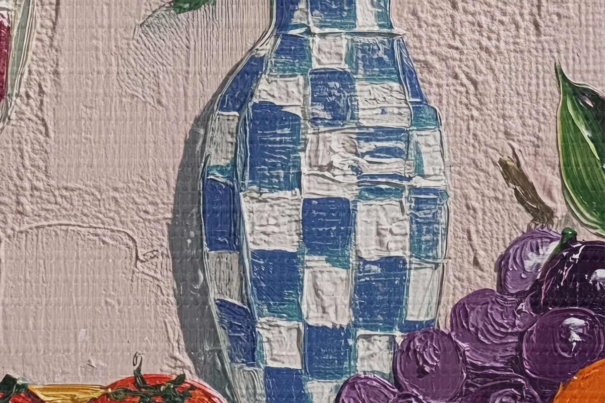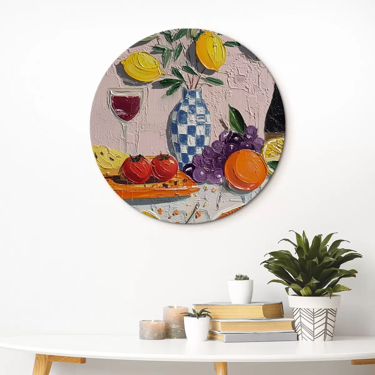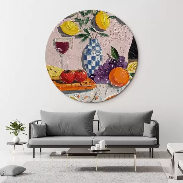 Picturi rotunde Natură moartă în culori pastelate: lămâi, struguri și roșii, impasto r45876