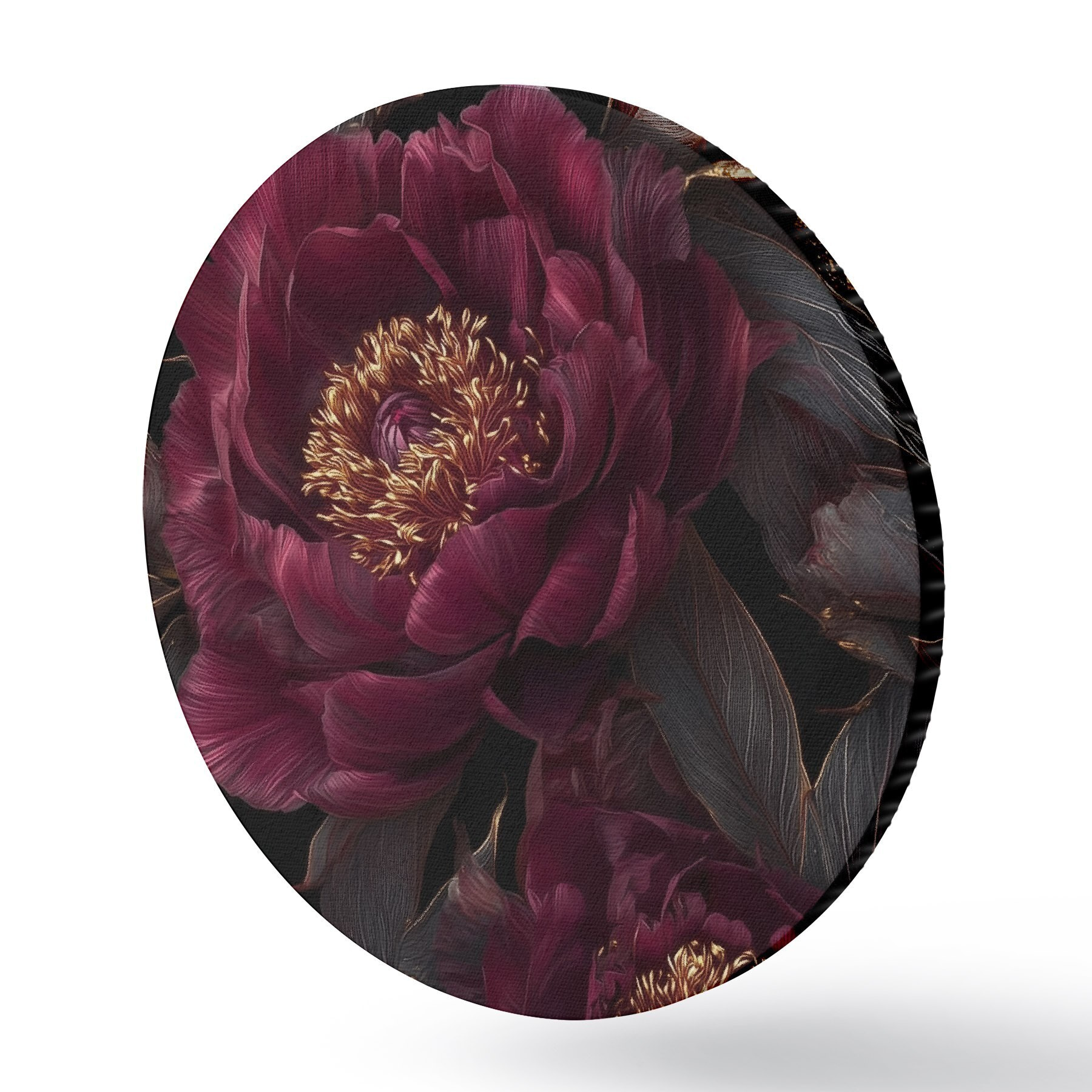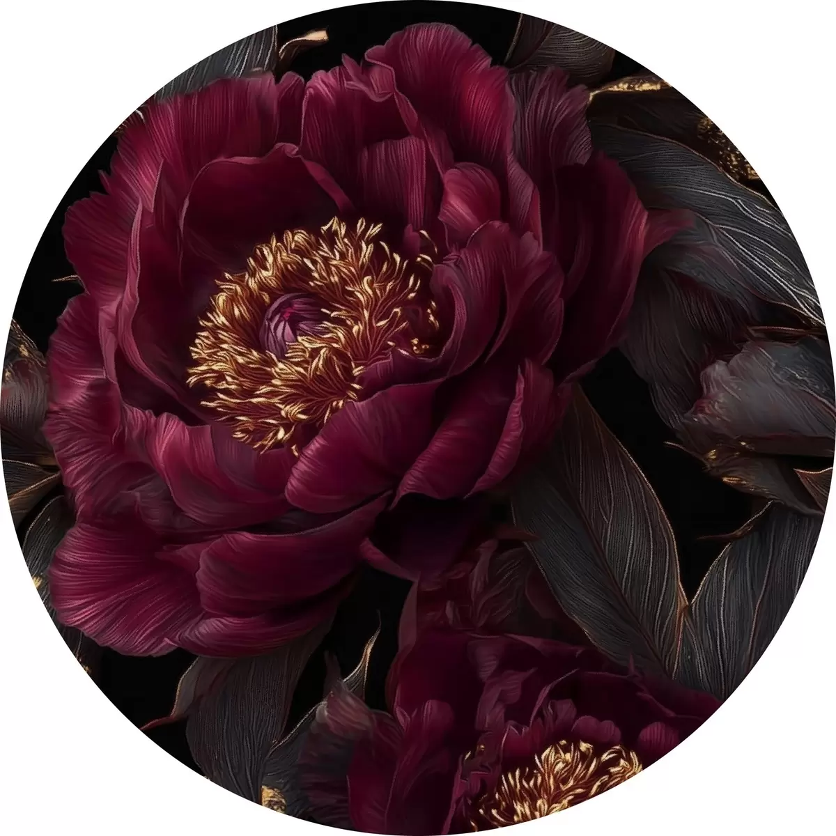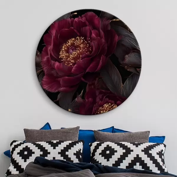 Picturi rotunde Bujori burgund pe fond negru cu accente galbene Nr r45877