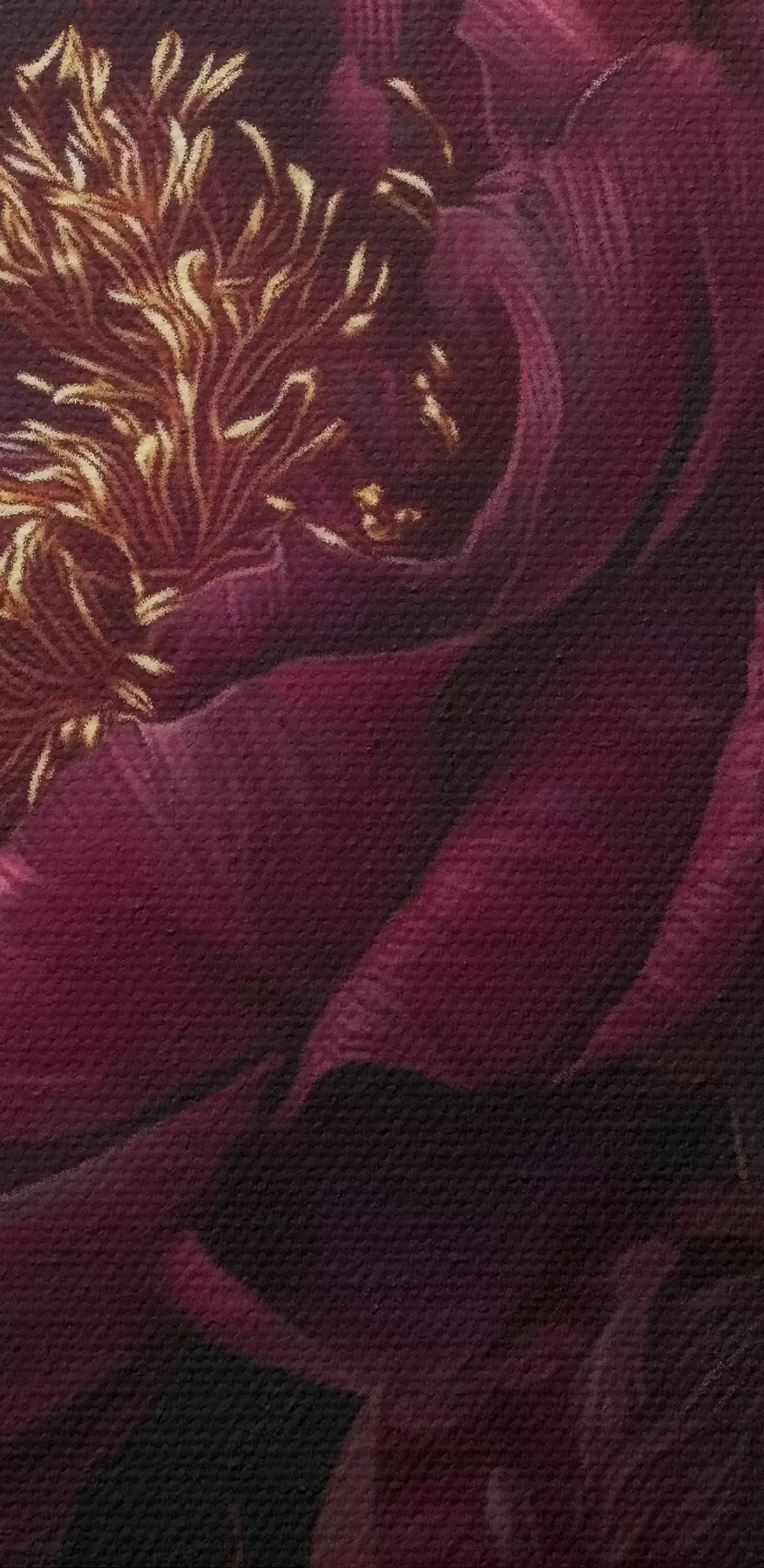 Picturi rotunde Bujori burgund pe fond negru cu accente galbene r45877