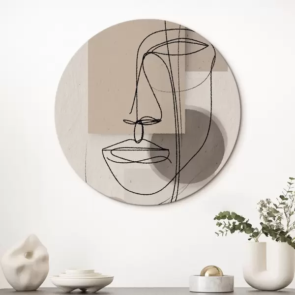 Picturi rotunde Portret în linie peste forme geometrice bej Nr r45886