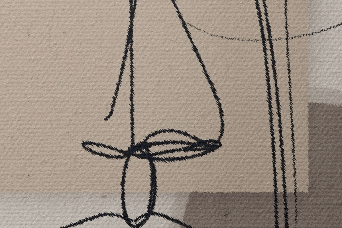 Picturi rotunde Portret în linie peste forme geometrice bej r45886