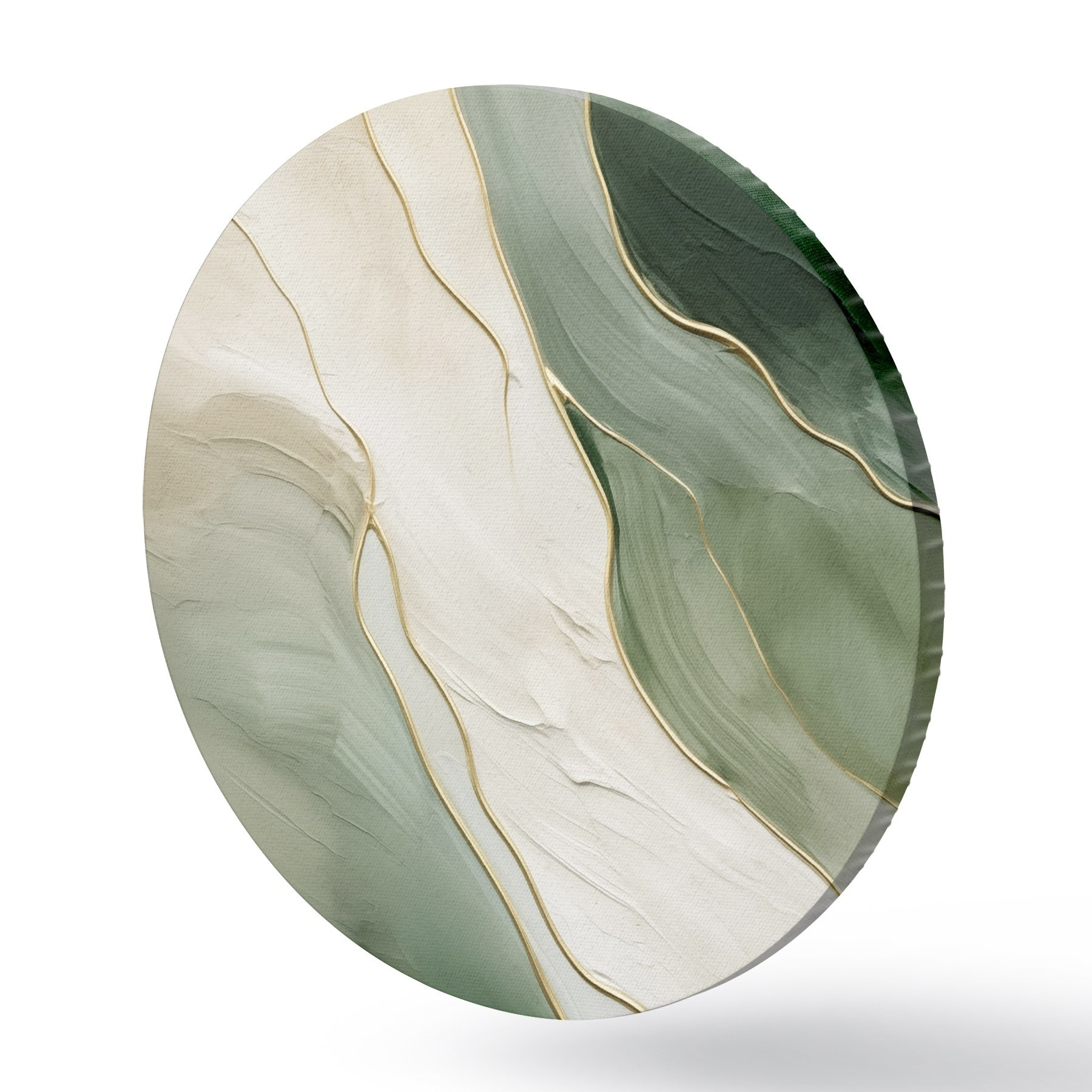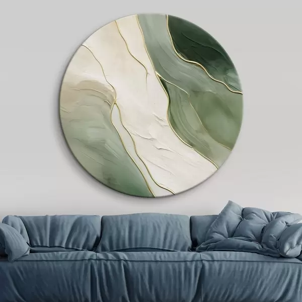 Picturi rotunde Abstracție smarald cu linii fine galbene Nr r45888