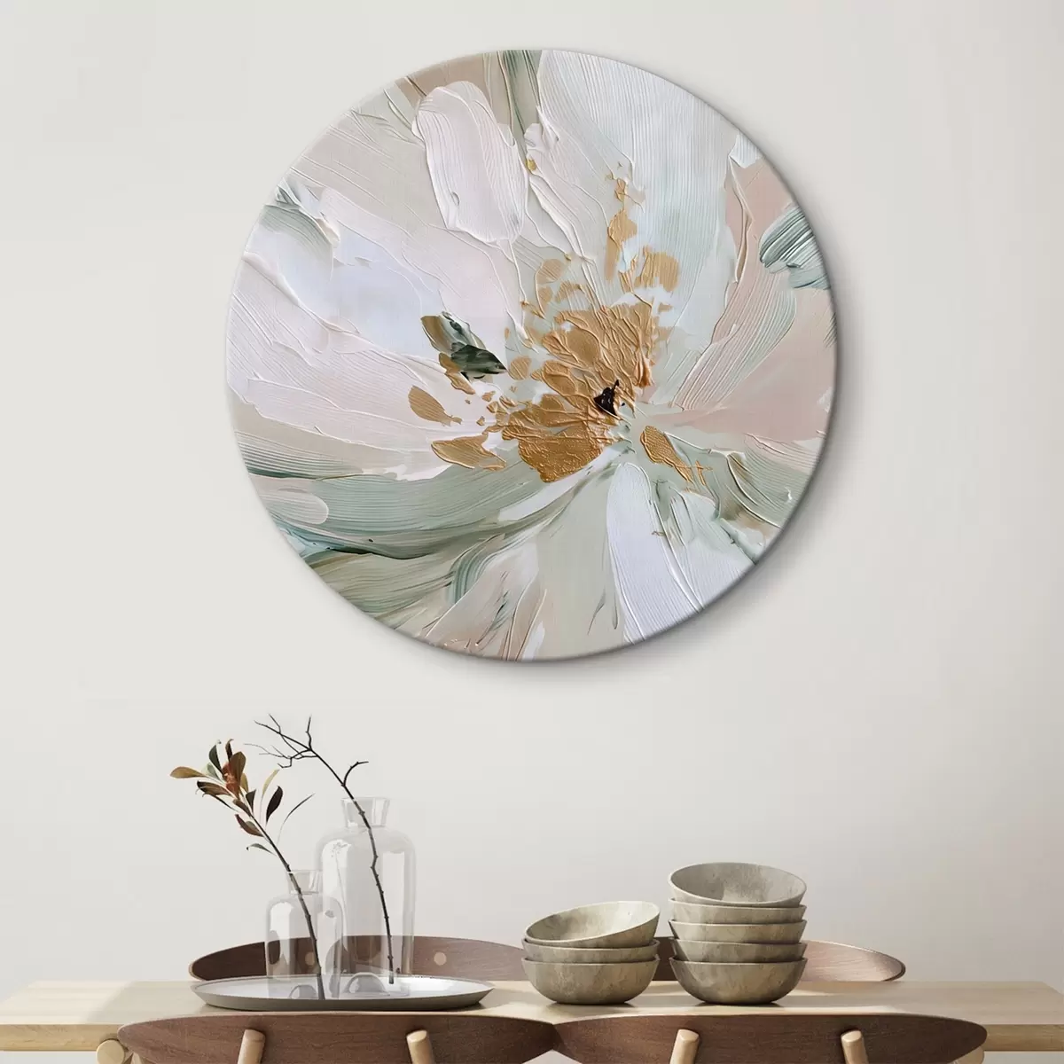 Picturi rotunde Floare pastelată impasto cu accente galbene Nr r45900