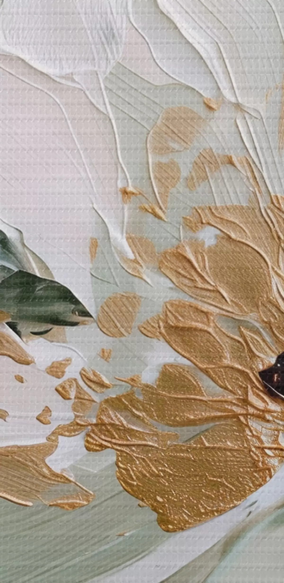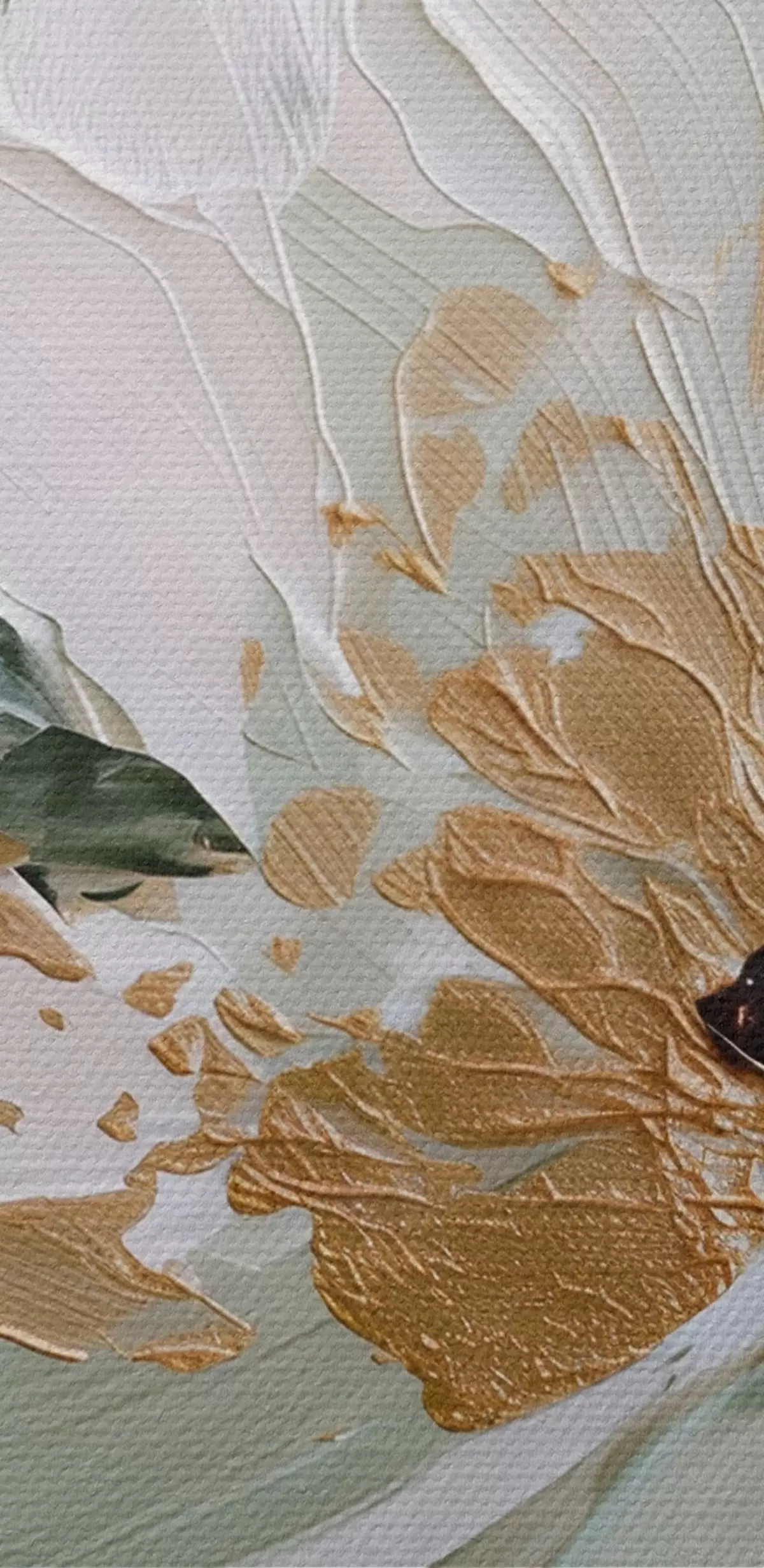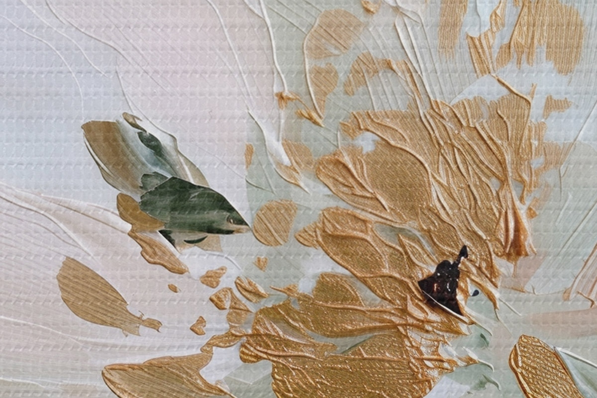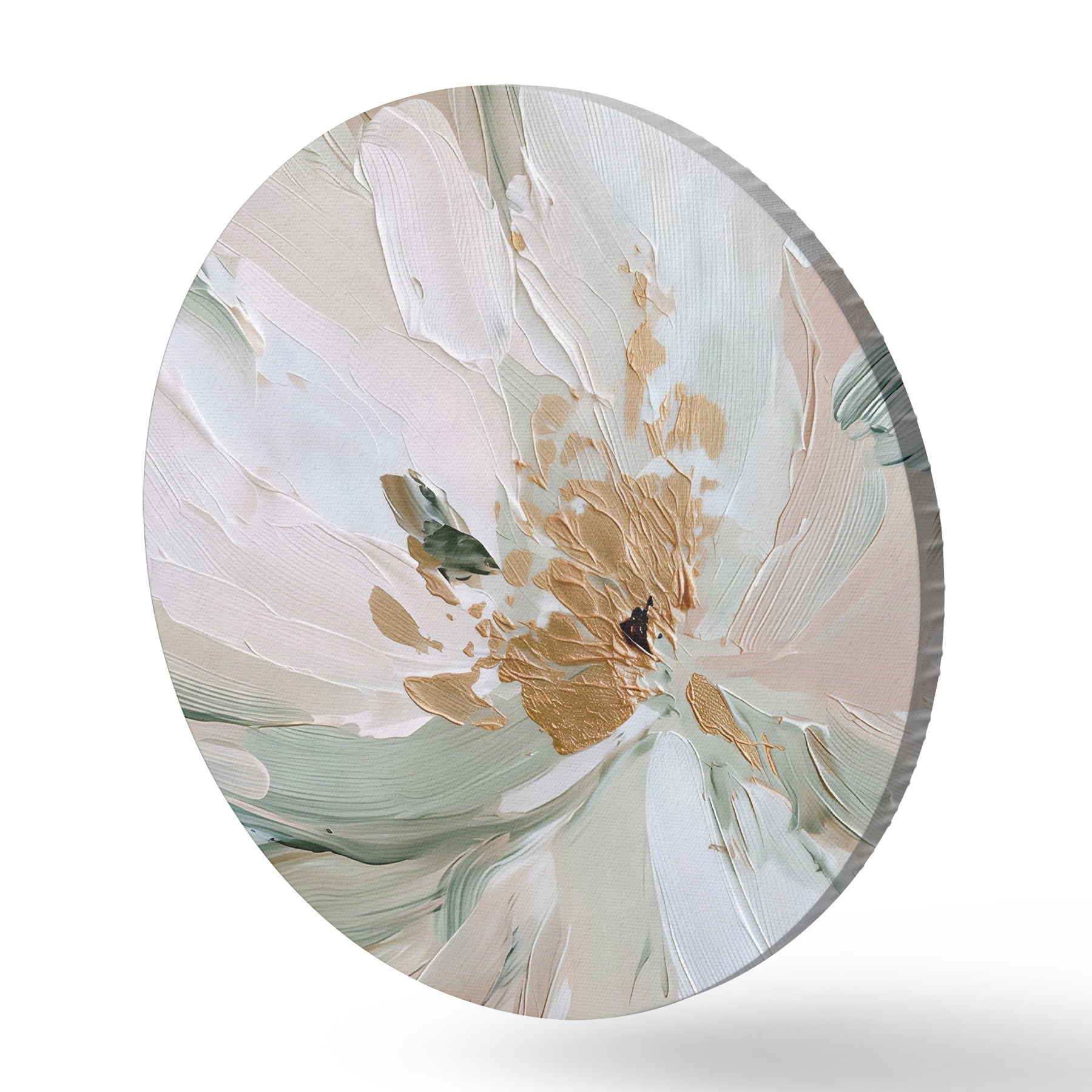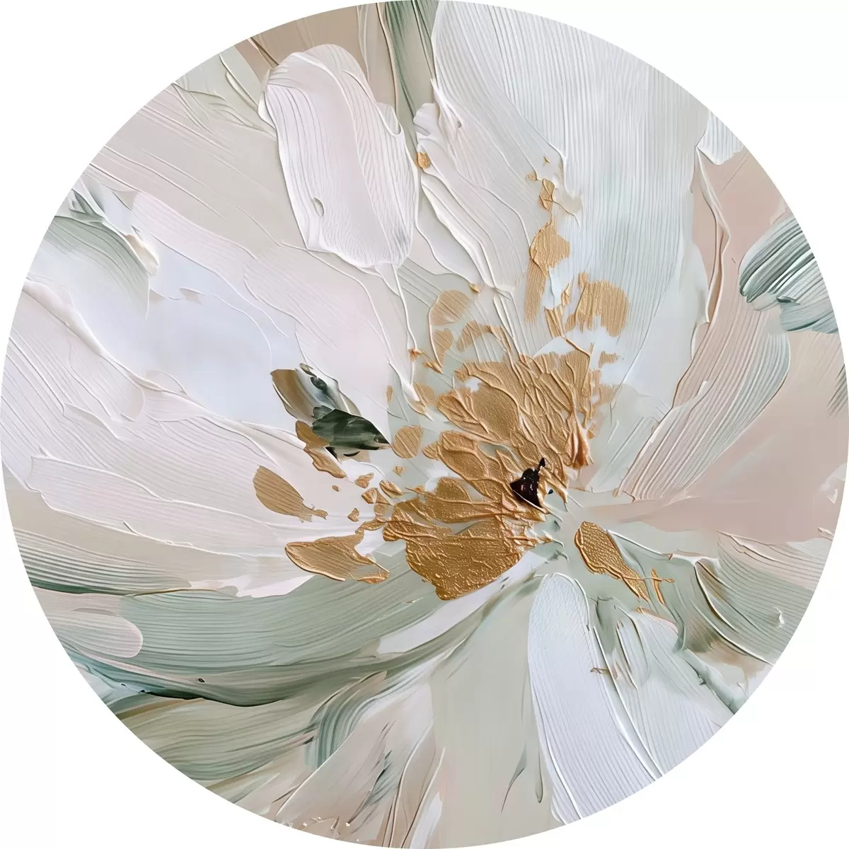 Picturi rotunde Floare pastelată impasto cu accente galbene Nr r45900