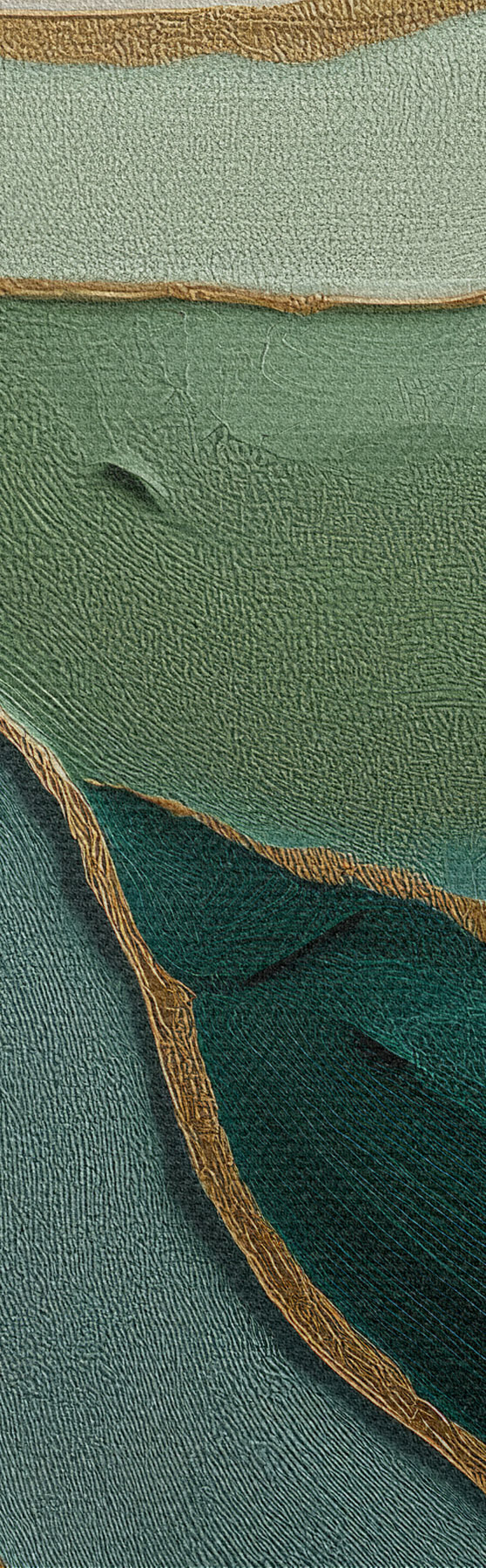 Picturi rotunde Abstracție verde stratificată cu linii galbene și profunzime Nr r45902