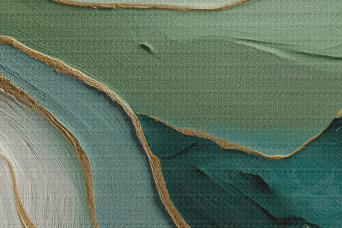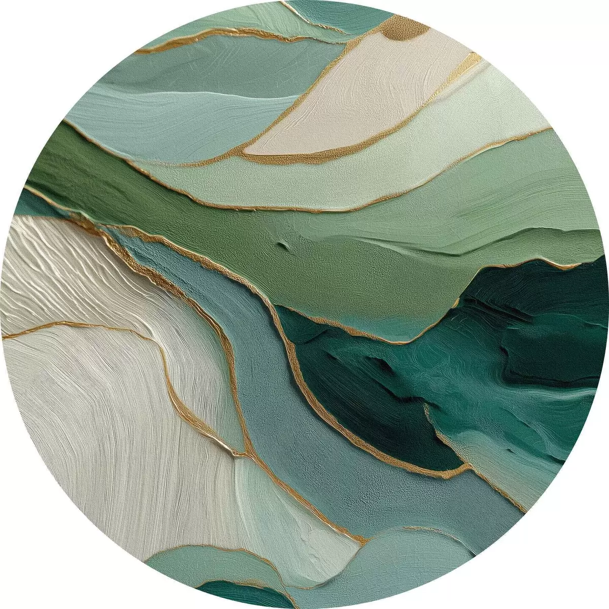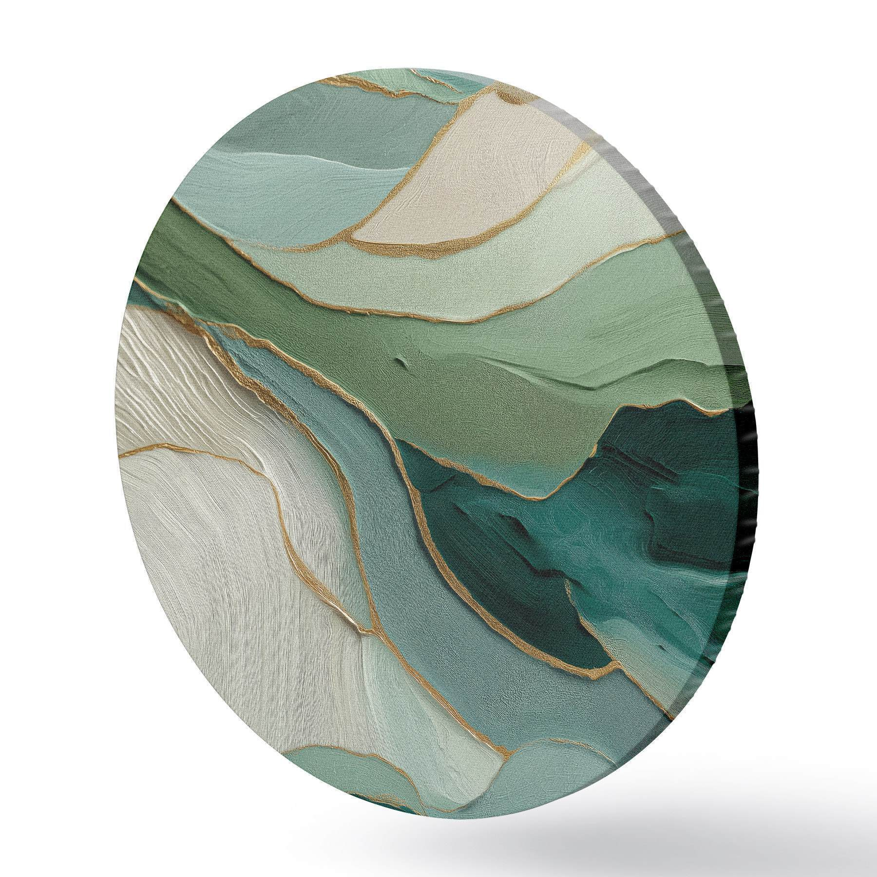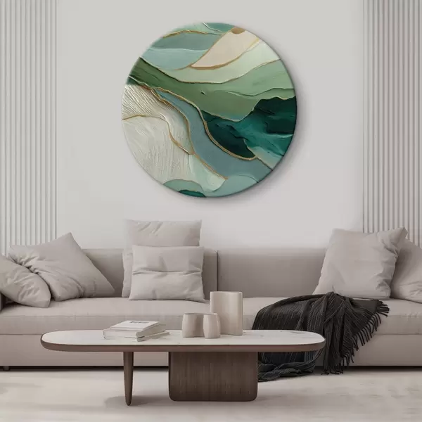 Picturi rotunde Abstracție verde stratificată cu linii galbene și profunzime Nr r45902