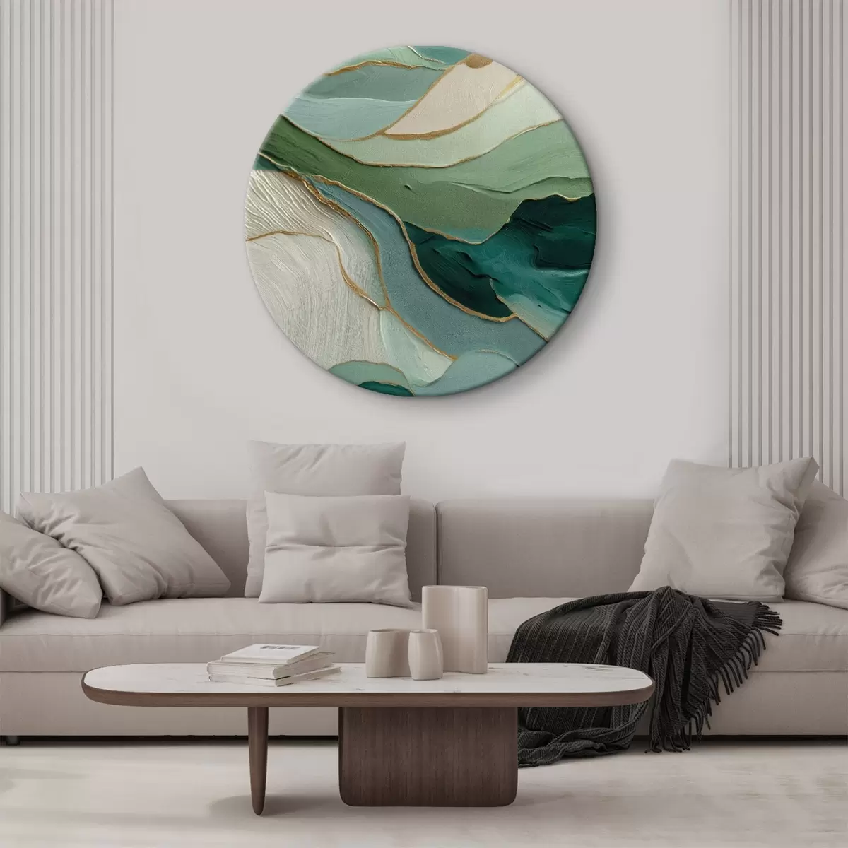 Picturi rotunde Abstracție verde stratificată cu linii galbene și profunzime r45902