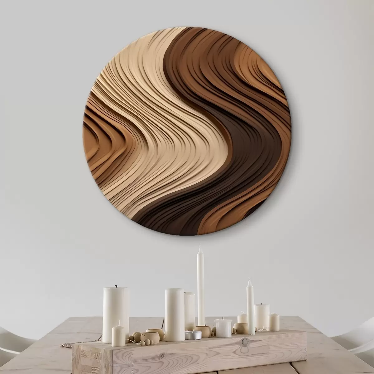 Picturi rotunde Valuri verticale în straturi calde de bej-maro r45905