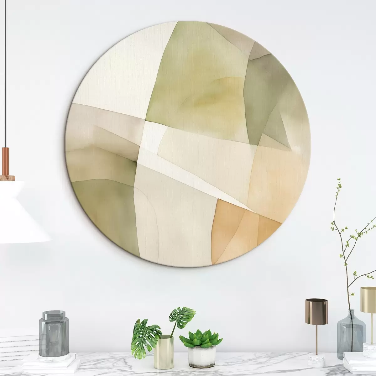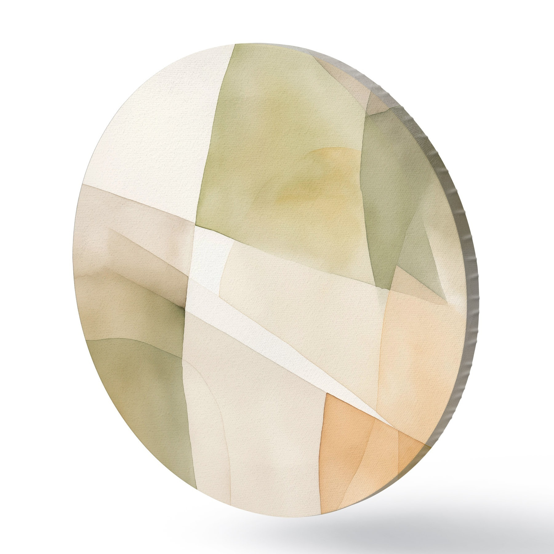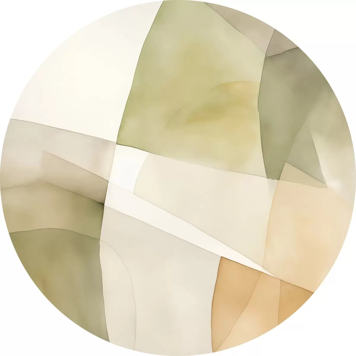 Picturi rotunde Forme geometrice abstracte texturate în acuarelă, în nuanțe de verde, maro și bej Nr r45928