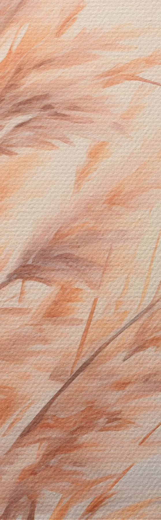 Picturi rotunde Iarbă de pampas cu paletă de culori portocaliu pastel, cer roz deschis, un peisaj liniștit r45934