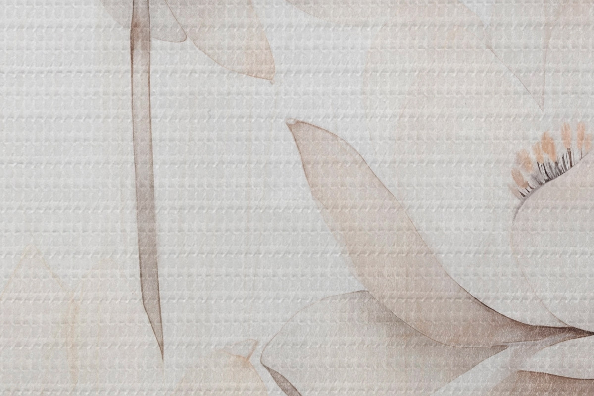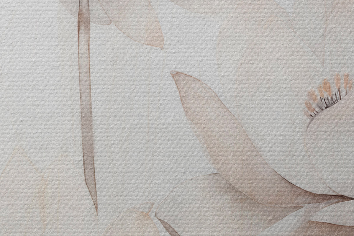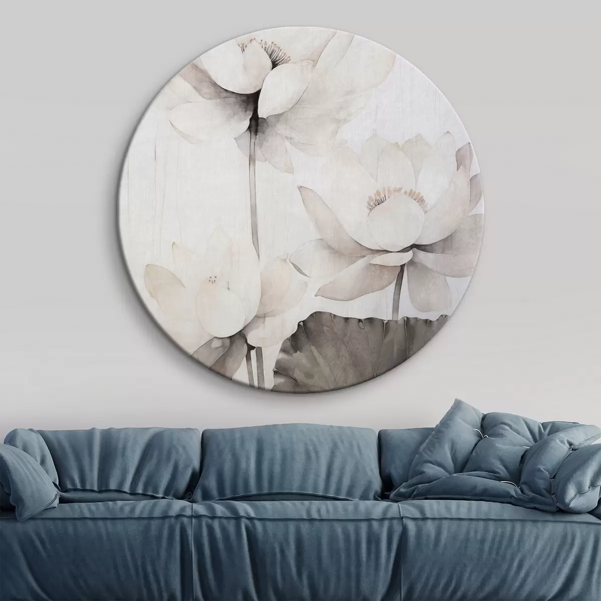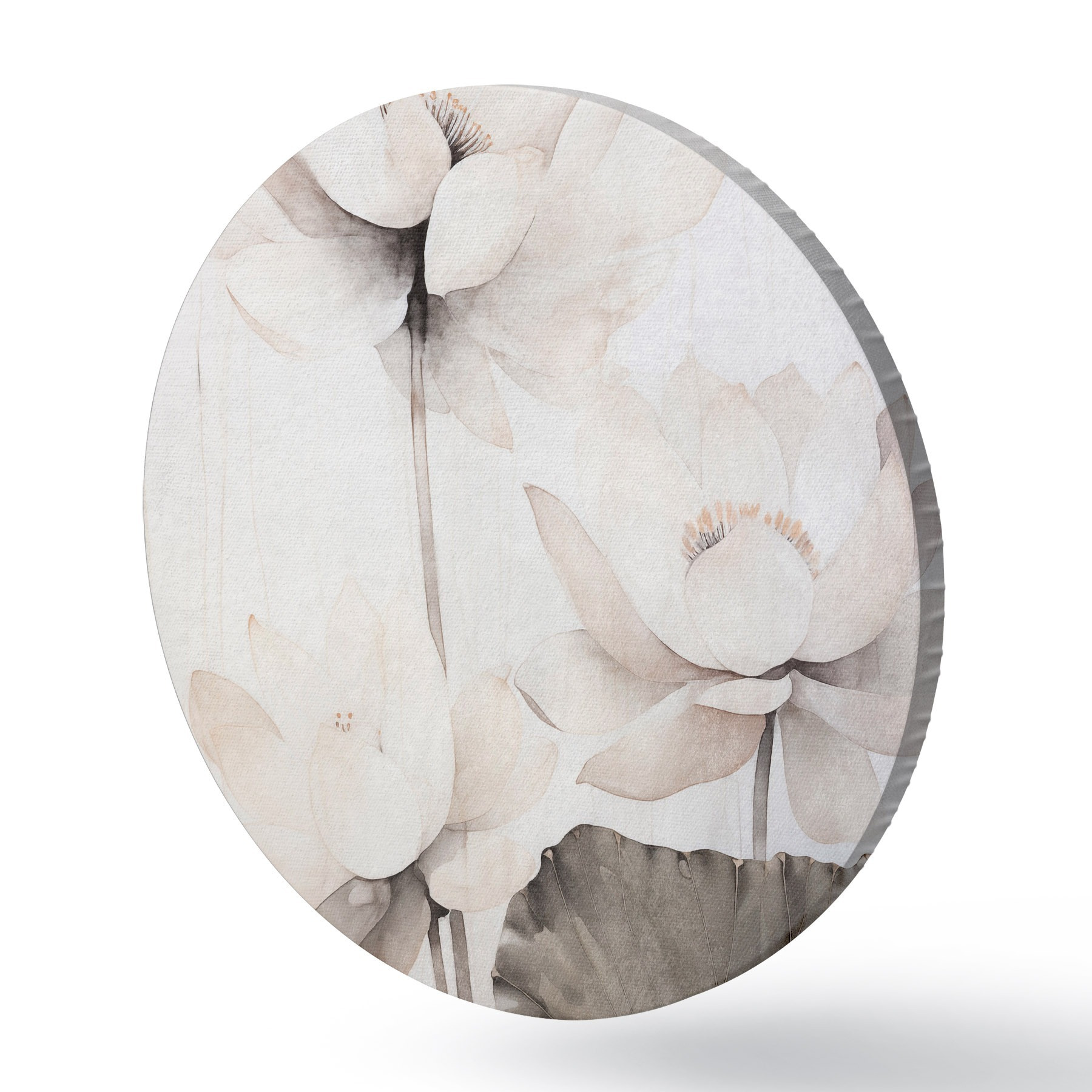 Picturi rotunde Flori de lotus albe texturate cu frunze întunecate, fundal deschis, design minimalist Nr r45936