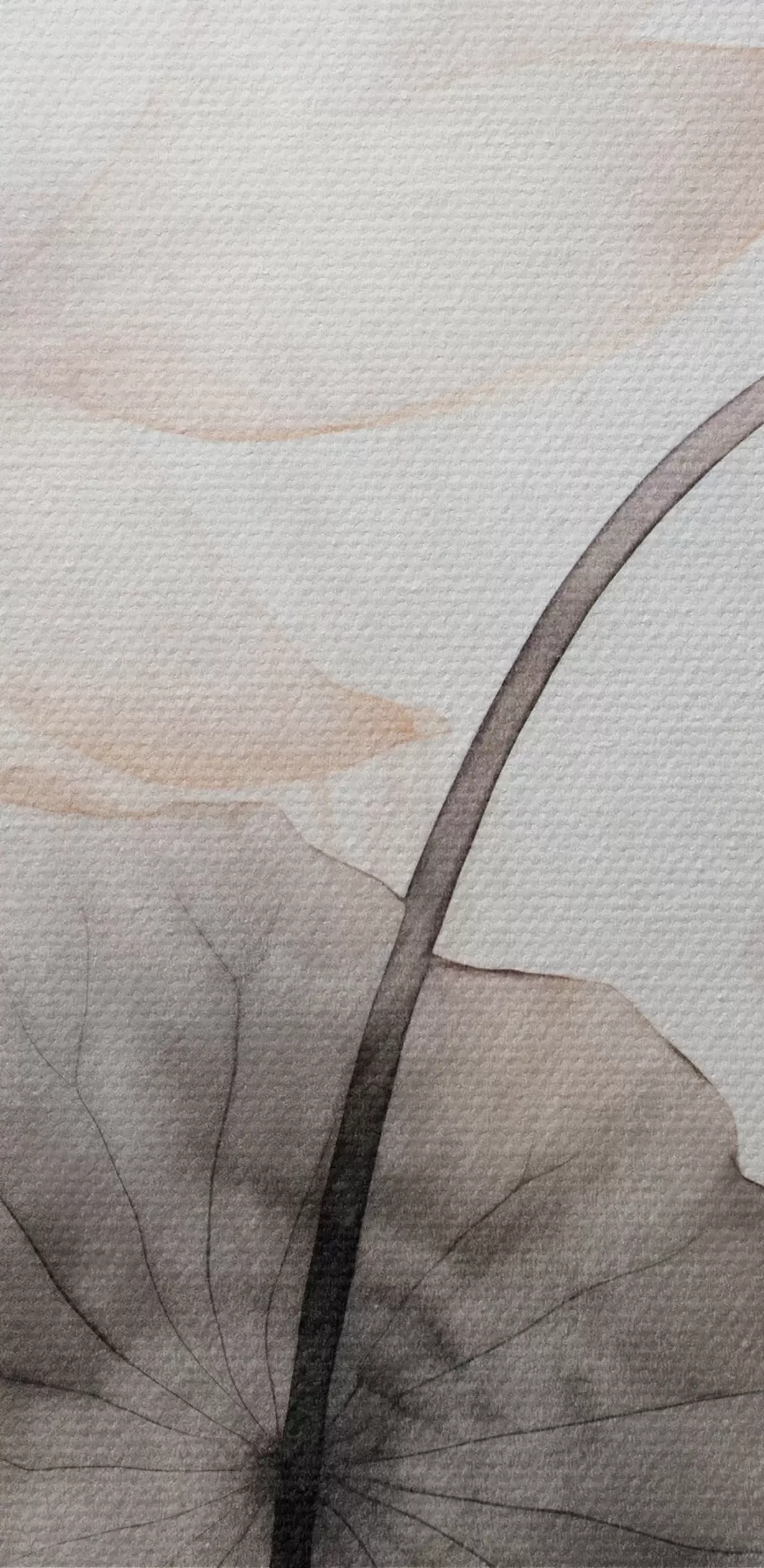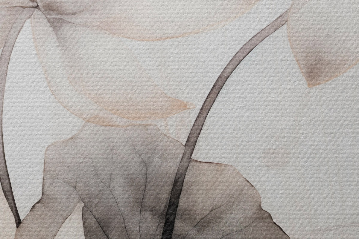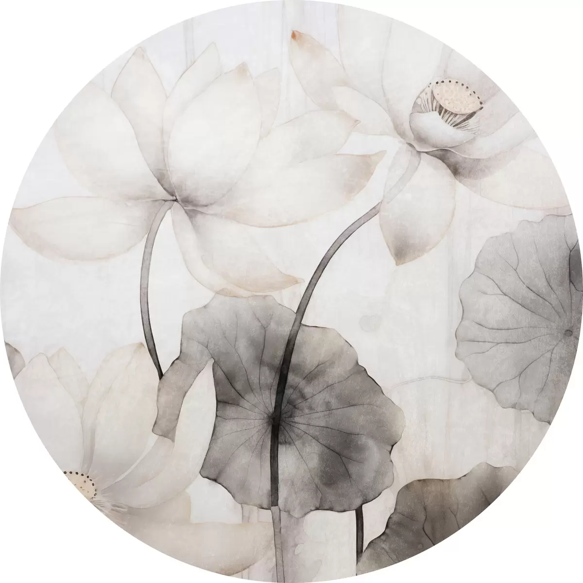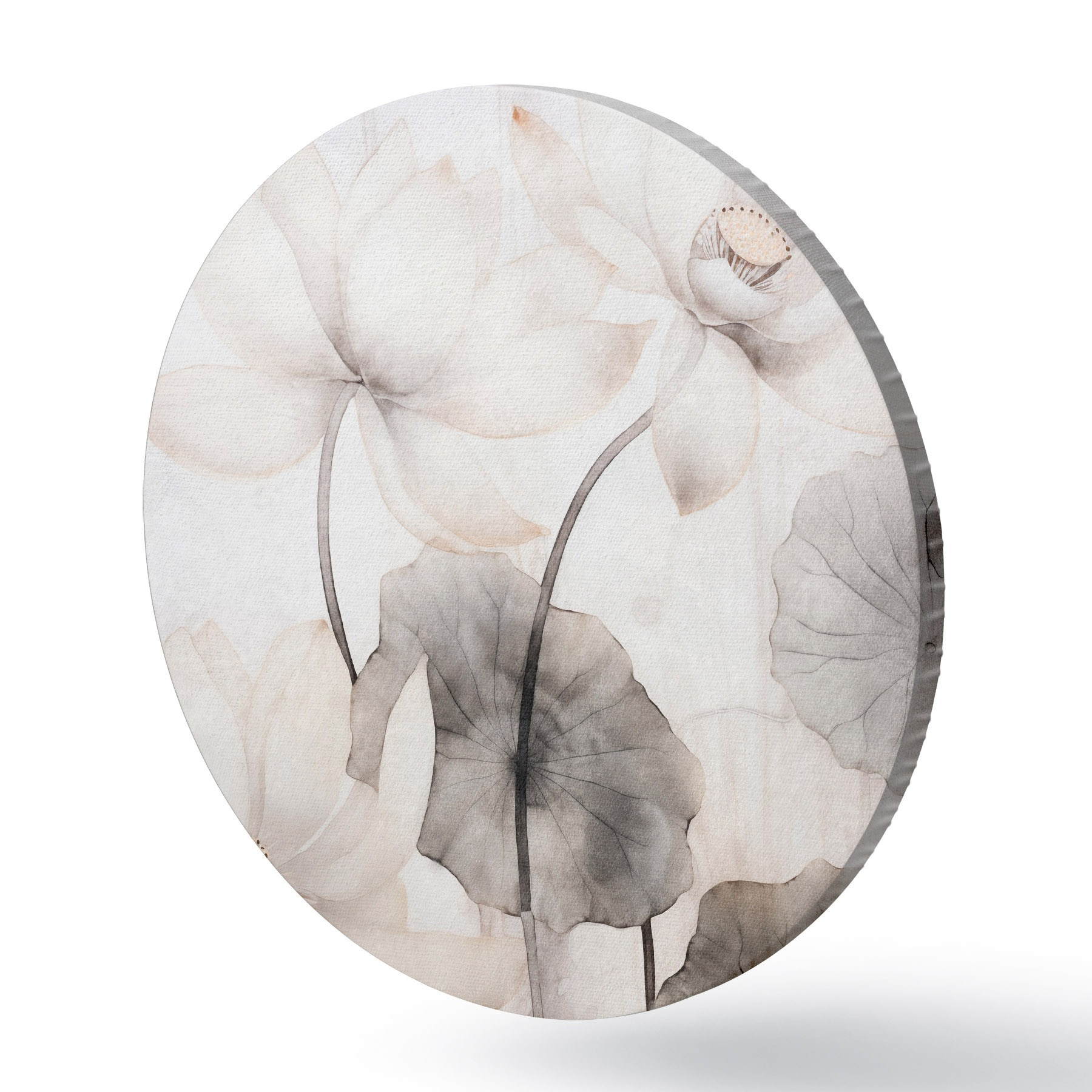 Picturi rotunde Flori de lotus albe texturate cu frunze întunecate, fundal deschis, design minimalist Nr r45937