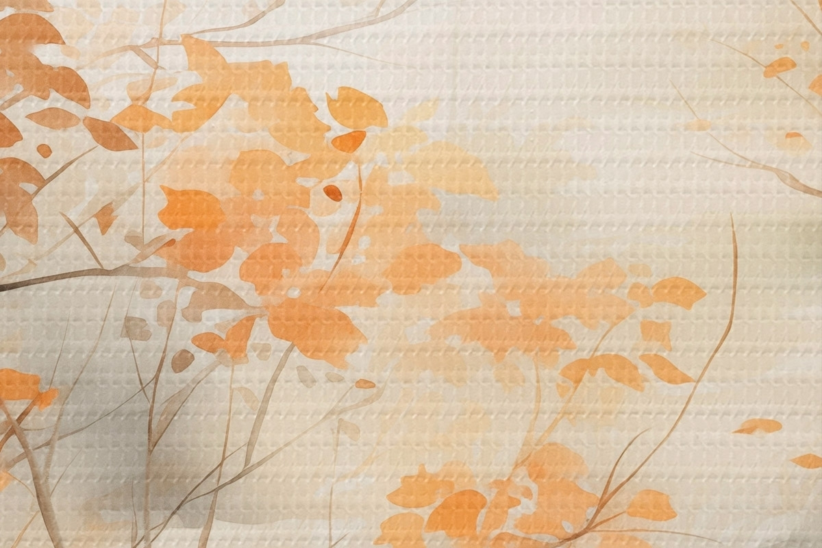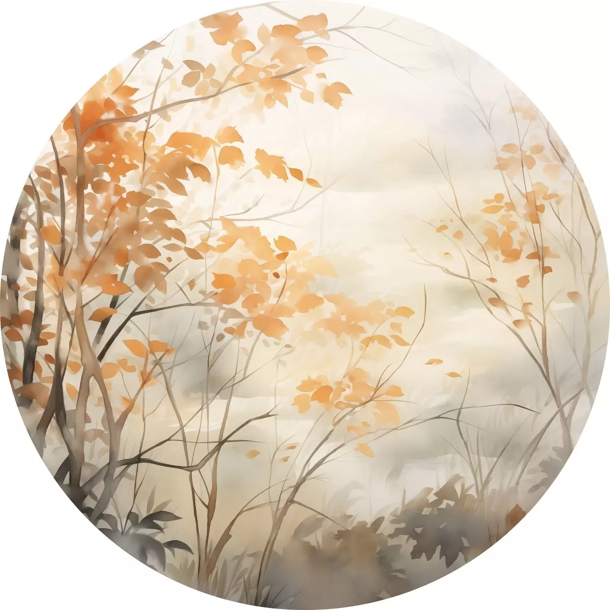 Picturi rotunde Copaci de toamnă cu frunze și ramuri portocalii, stil acuarelă delicată, tușe delicate r45941