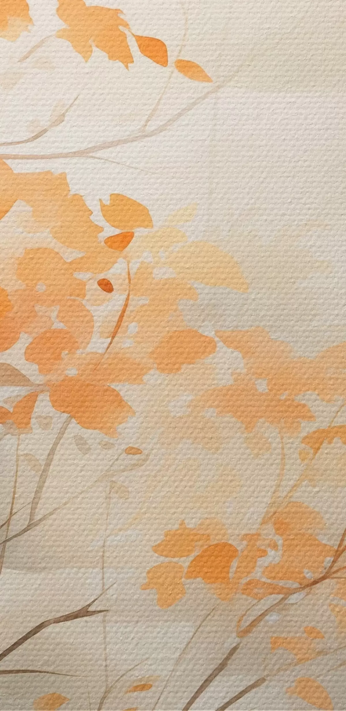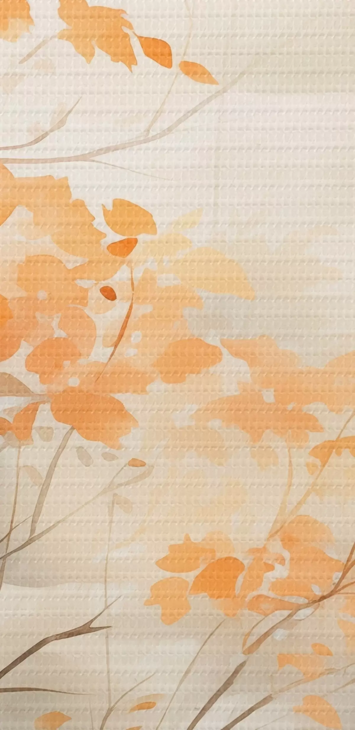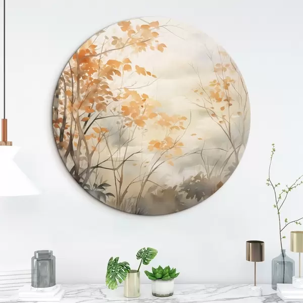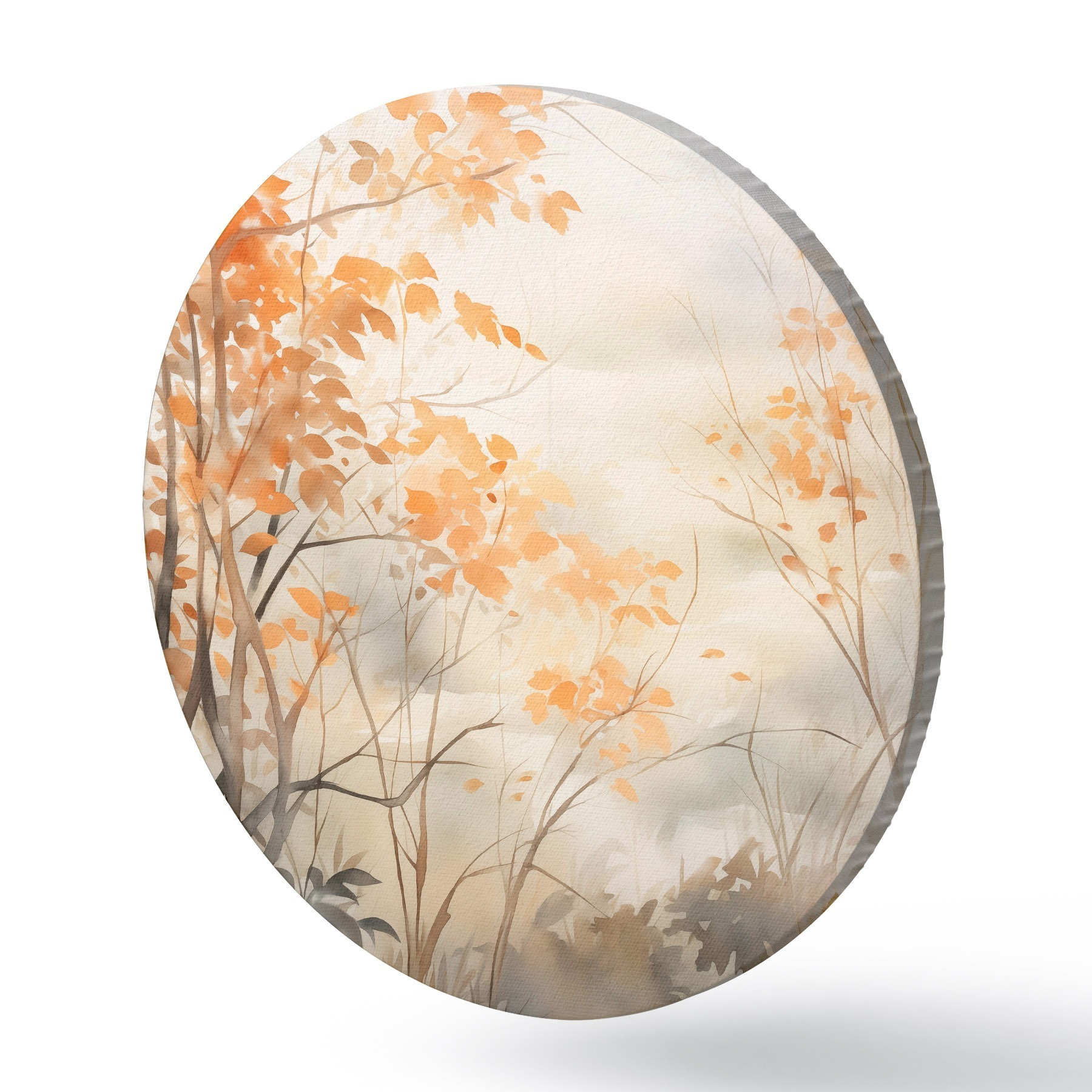 Picturi rotunde Copaci de toamnă cu frunze și ramuri portocalii, stil acuarelă delicată, tușe delicate Nr r45941