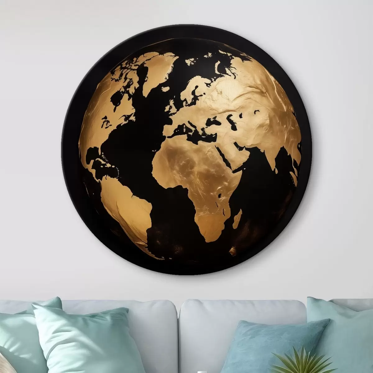 Picturi rotunde Glob pământesc abstract texturat galben, planetă pe fundal negru, artă minimalistă modernă Nr r45942