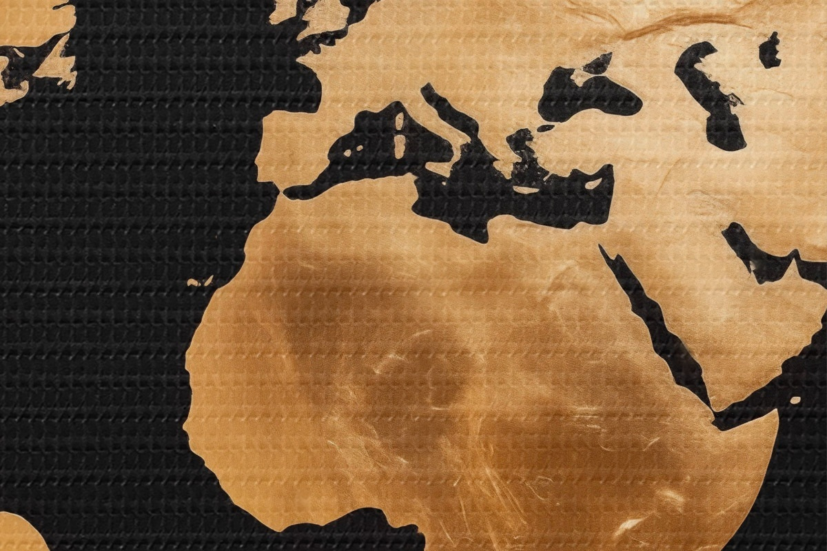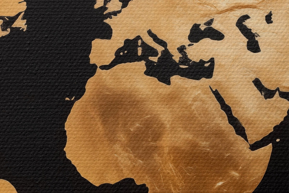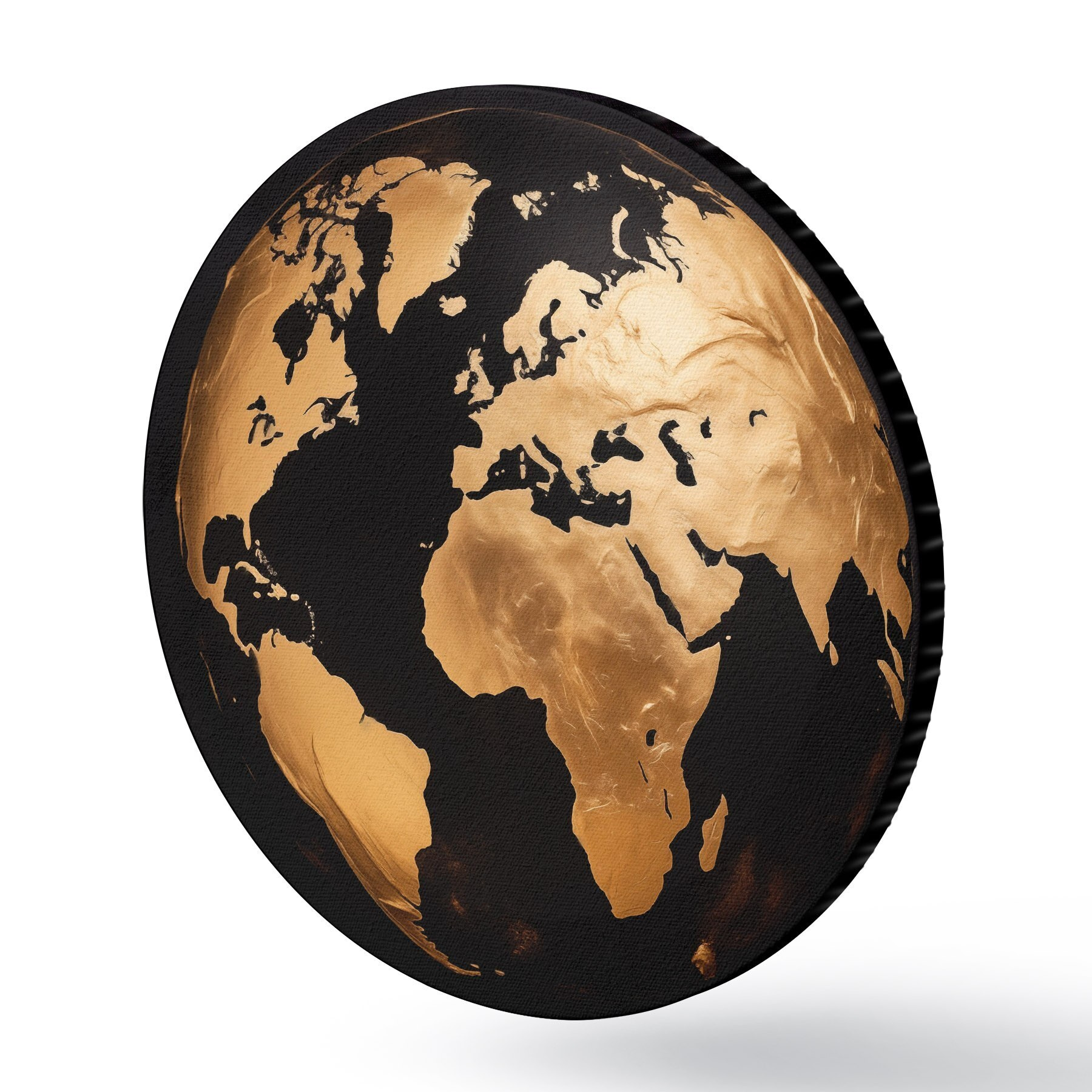 Picturi rotunde Glob pământesc abstract texturat galben, planetă pe fundal negru, artă minimalistă modernă r45942