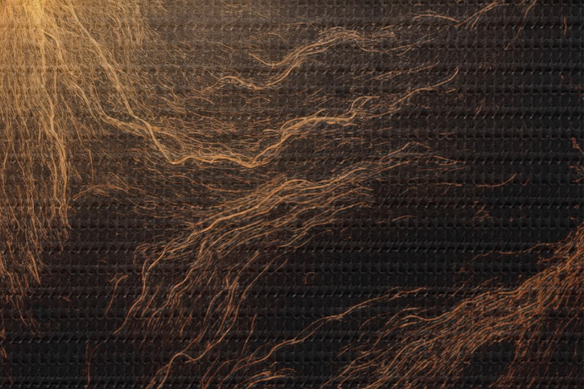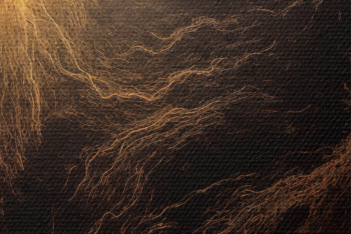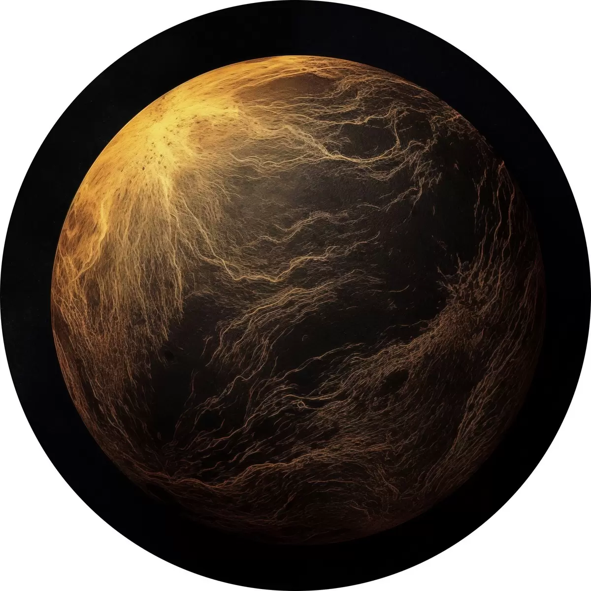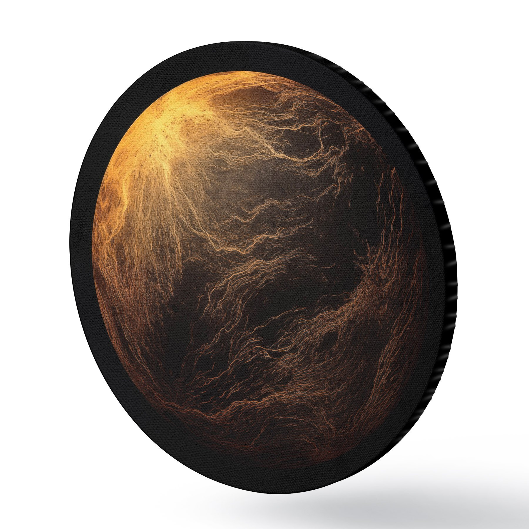 Picturi rotunde Planetă abstractă cu vene portocalii pe un fundal negru, artă modernă minimalistă r45943