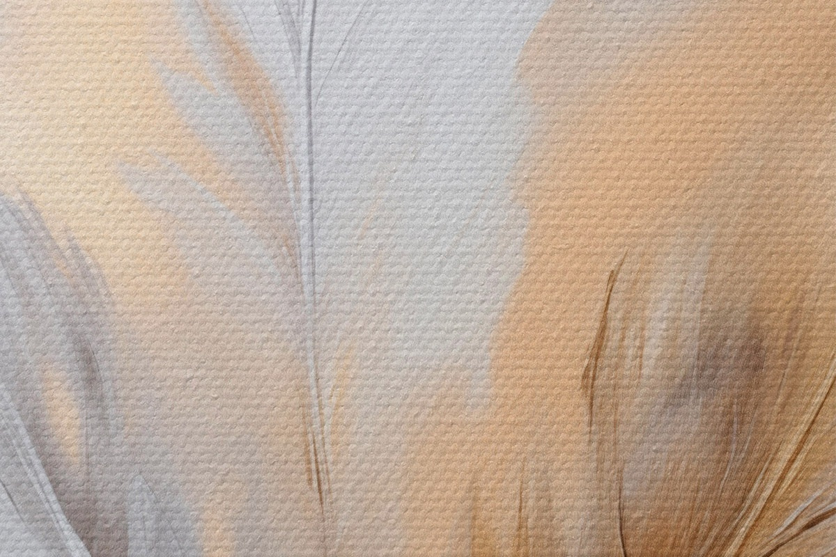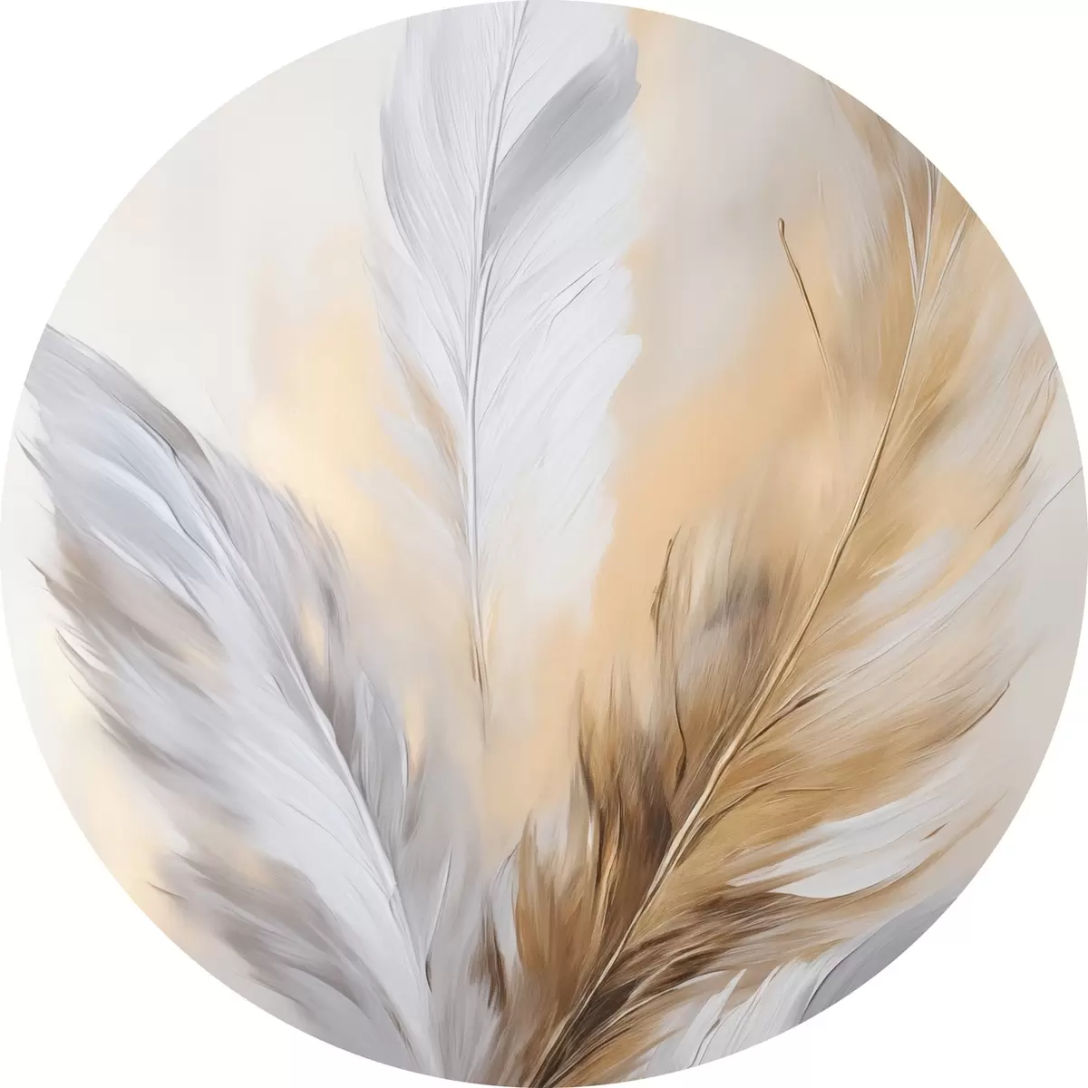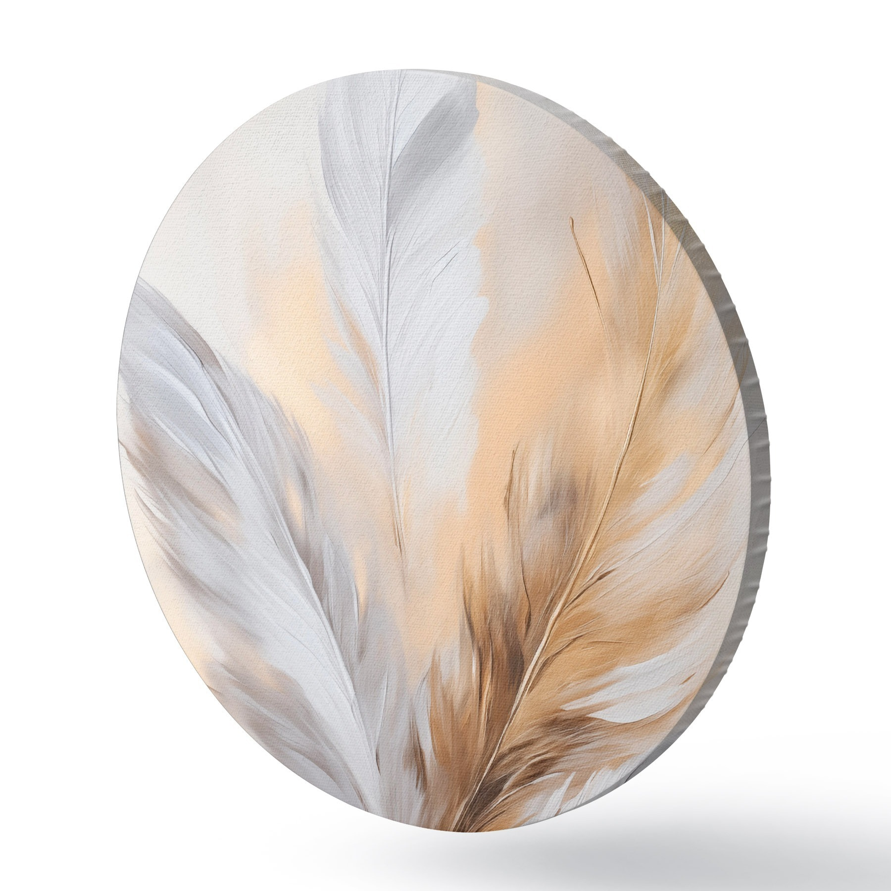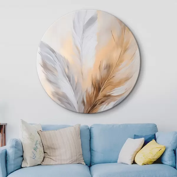 Picturi rotunde Pene cu accente portocalii, compoziție minimalistă texturată, artă modernă Nr r45945