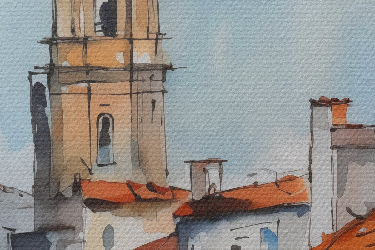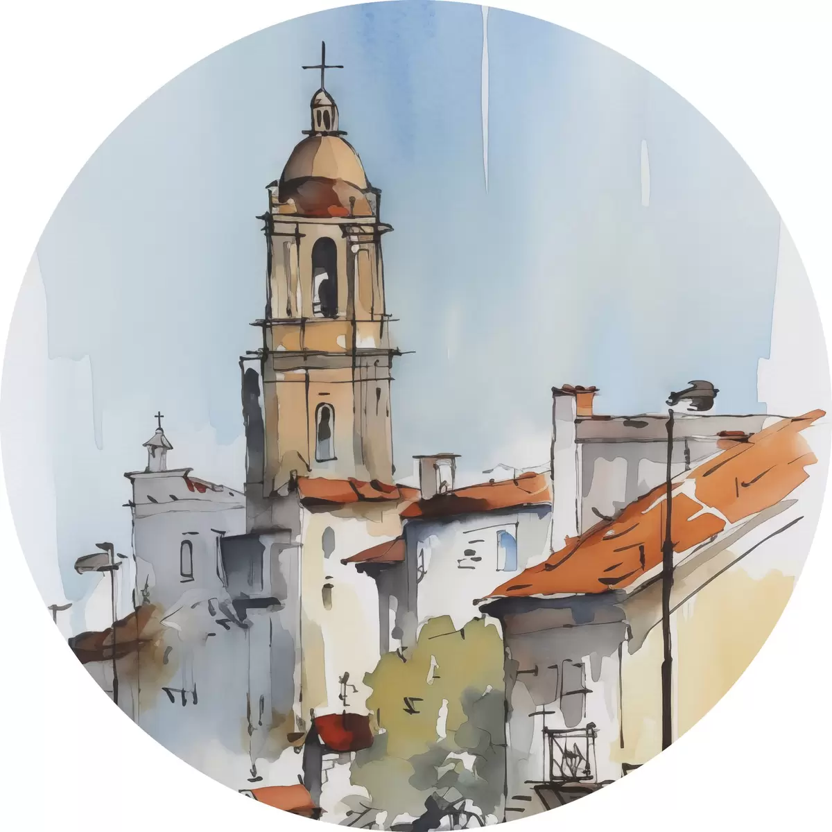 Picturi rotunde Acuarelă imitație peisaj urban Nr r46120