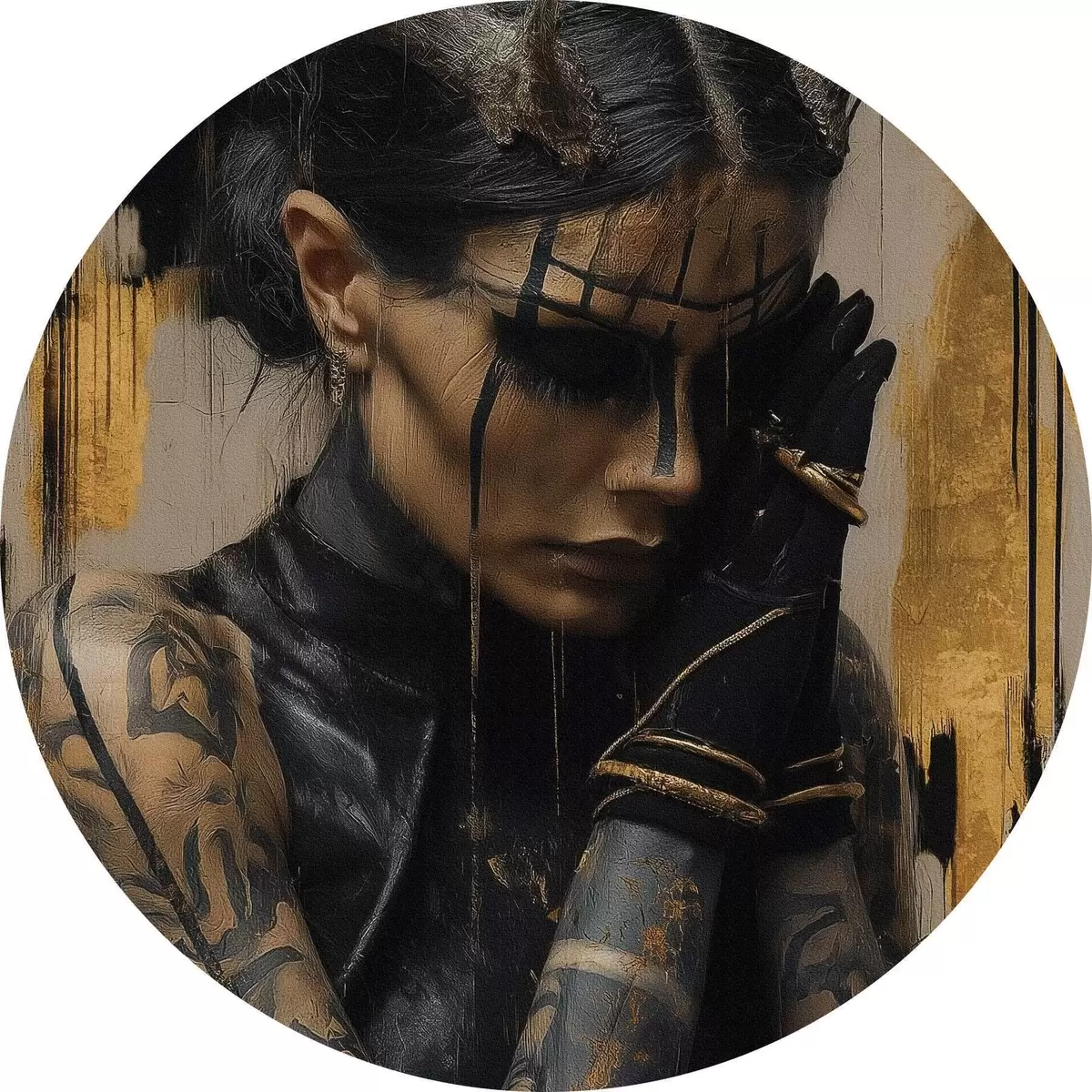 Picturi rotunde Femeie cu coarne, cu o privire întunecată și linii negre pe față r46144