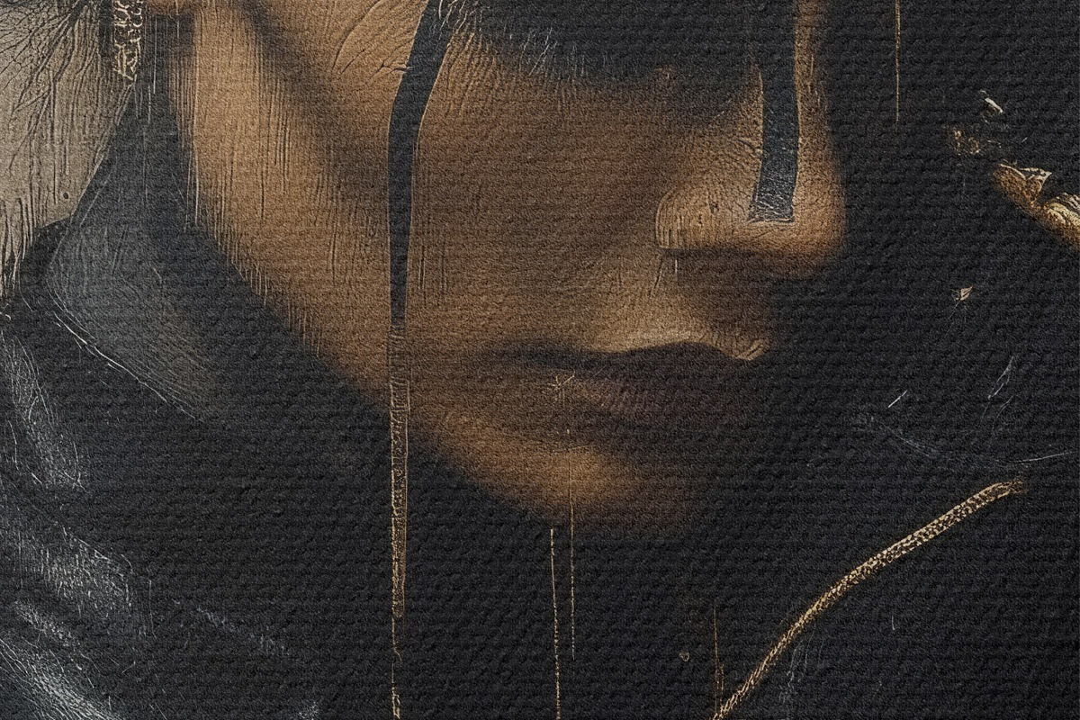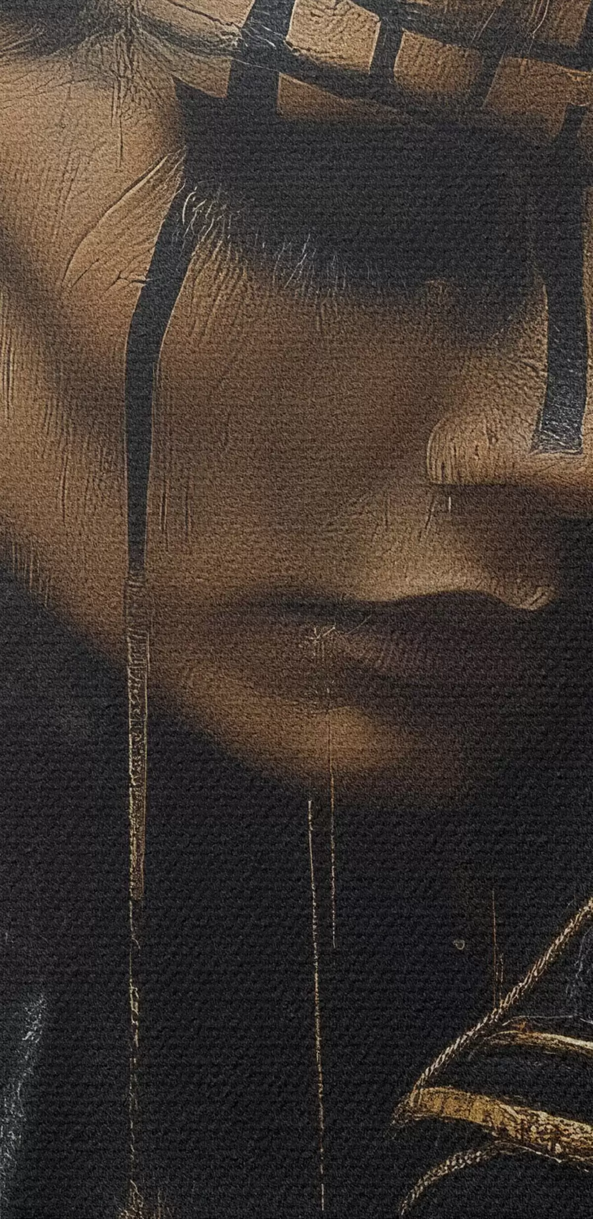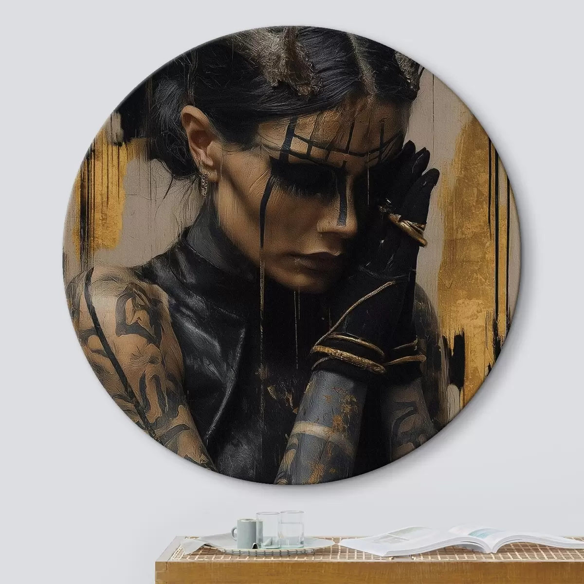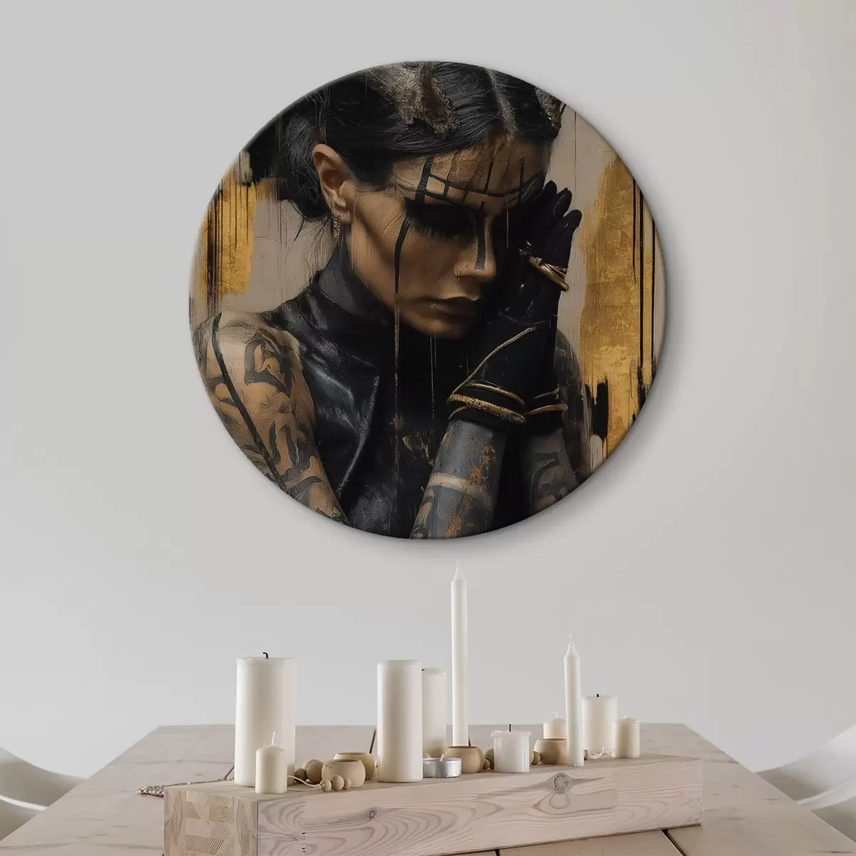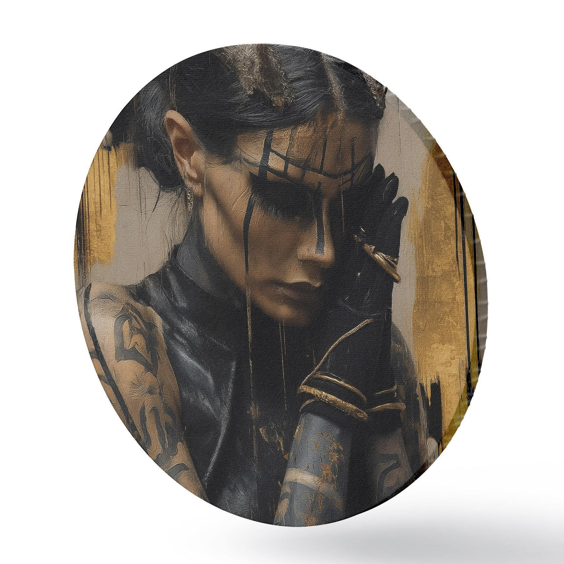 Picturi rotunde Femeie cu coarne, cu o privire întunecată și linii negre pe față Nr r46144
