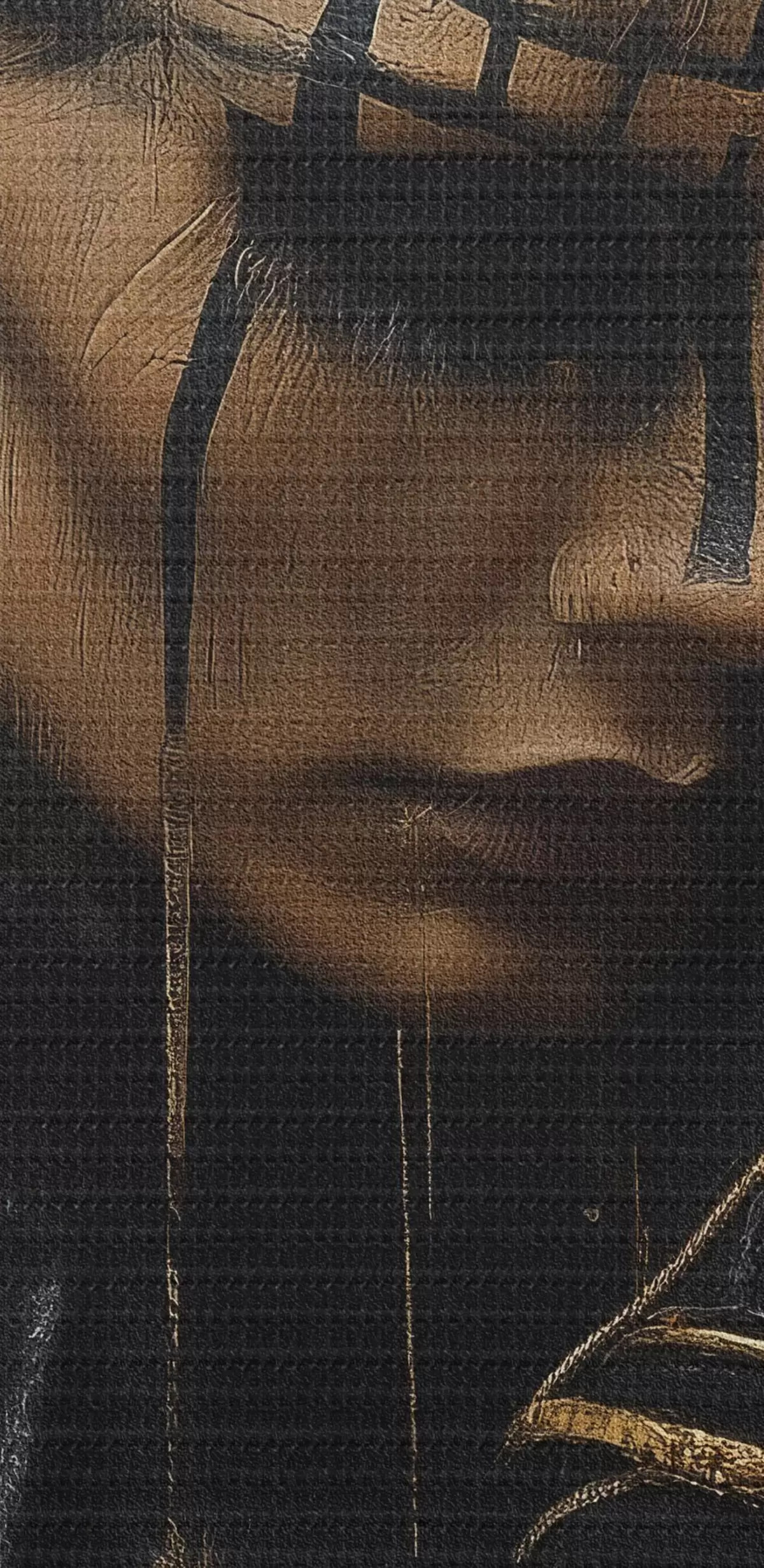 Țesătura fină a firelor de pe această pânză seamănă cu suprafața pânzelor artiștilor profesioniști.