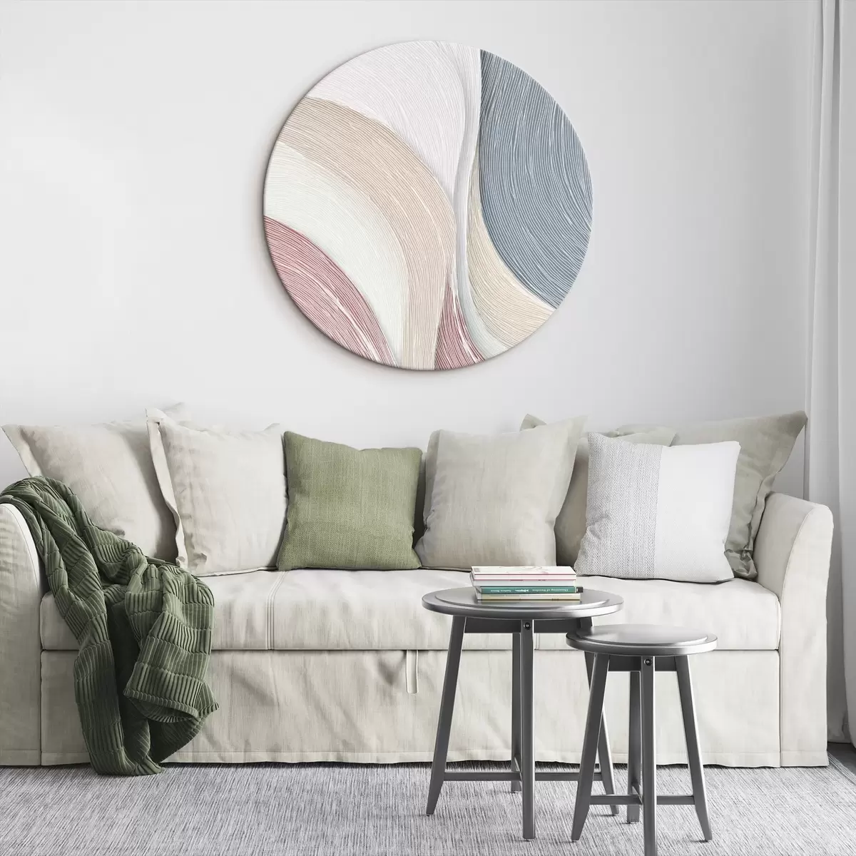 Picturi rotunde Valuri abstracte ușoare în nuanțe de roz pal și gri-alb Nr r46153