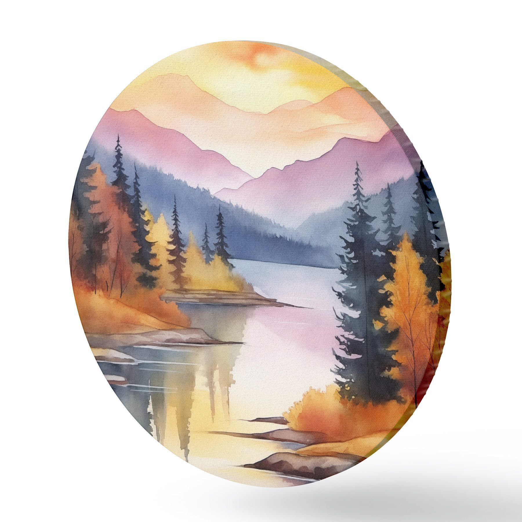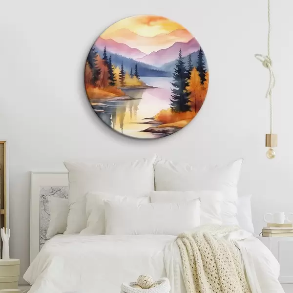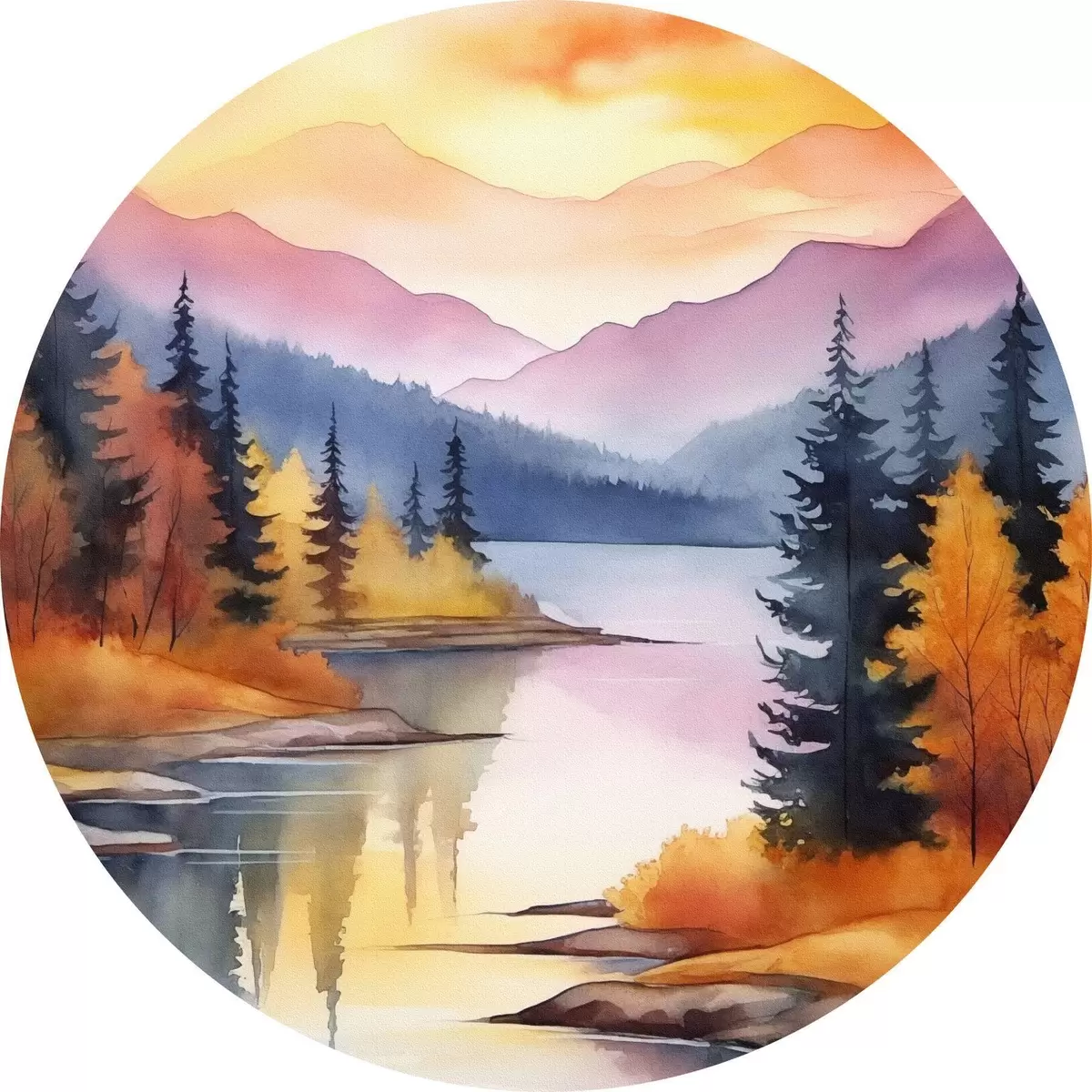 Picturi rotunde Peisaj de toamnă lângă lac, cu cer senin Nr r46155