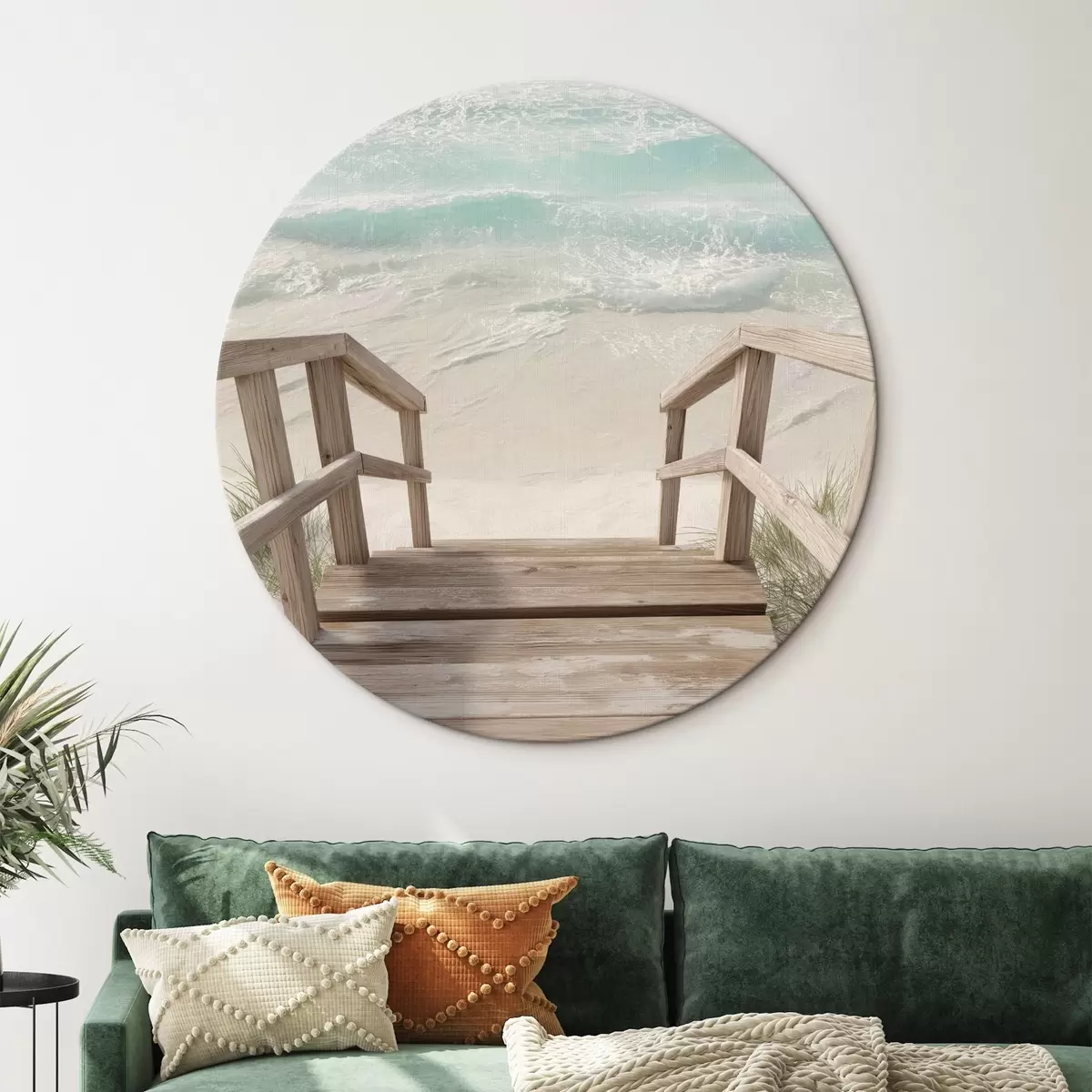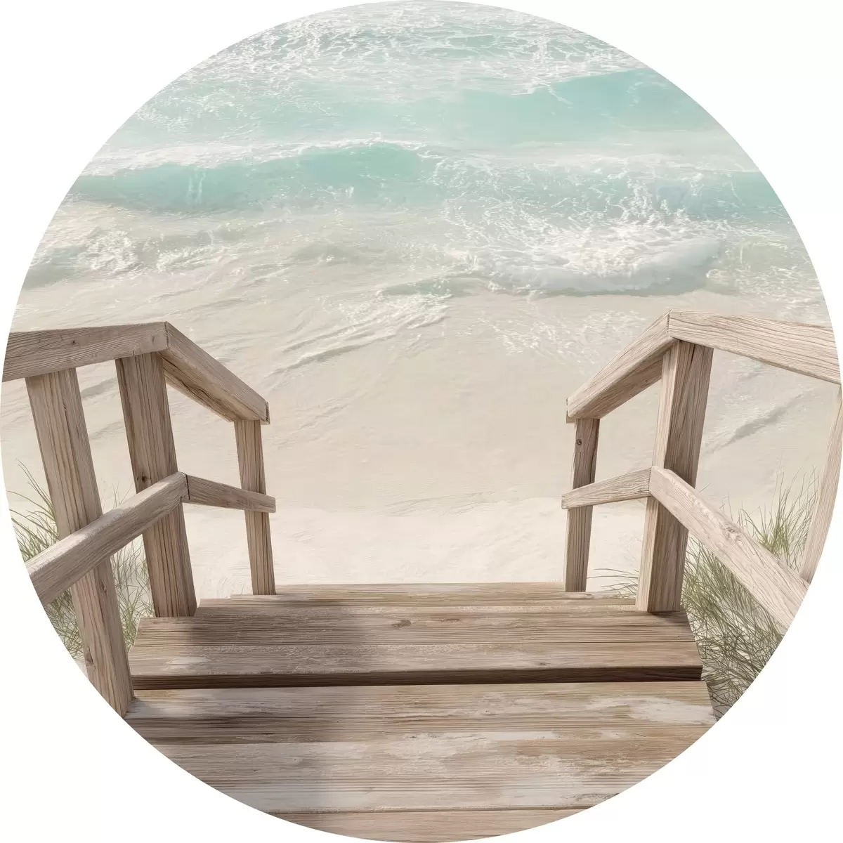 Picturi rotunde Scări din lemn care duc la o plajă turcoaz Nr r46163