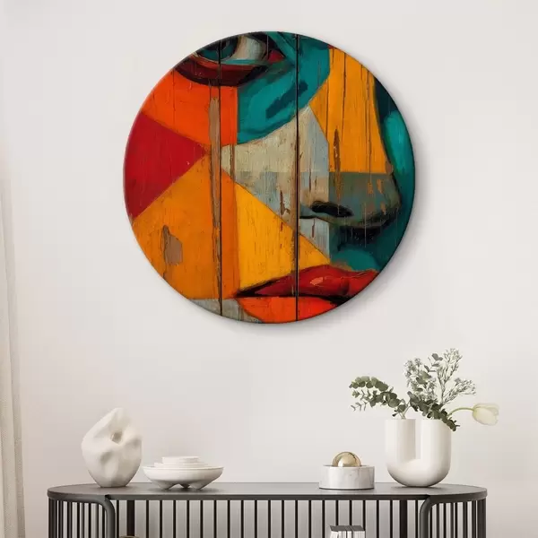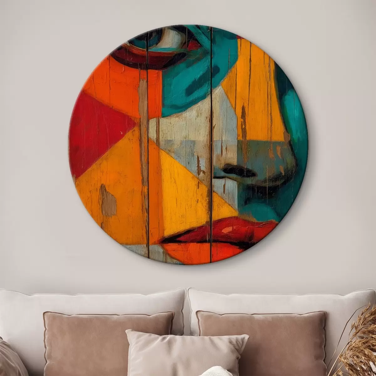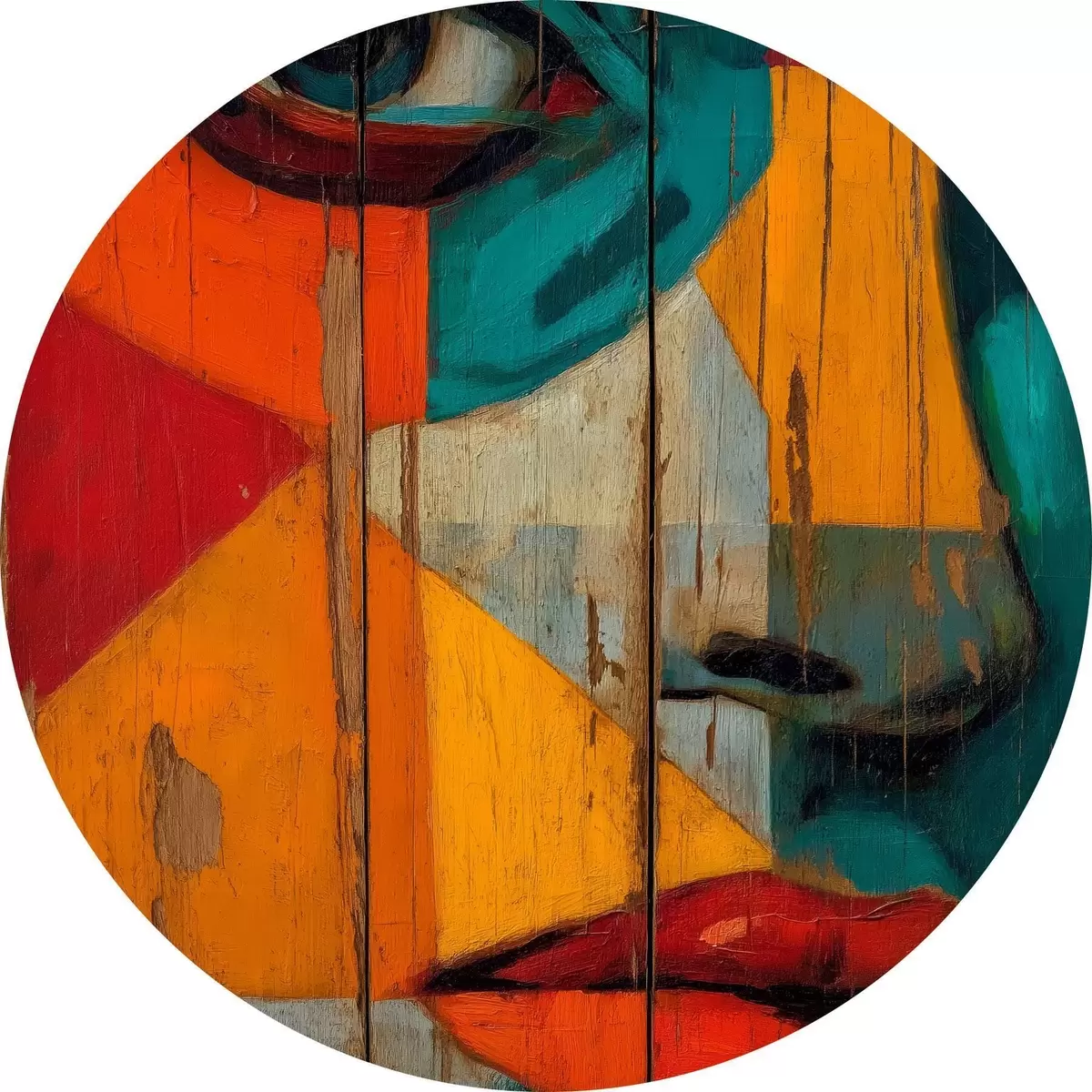 Picturi rotunde Portret geometric luminos pe panouri din lemn Nr r46165