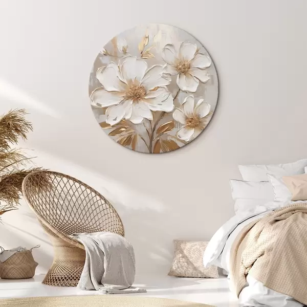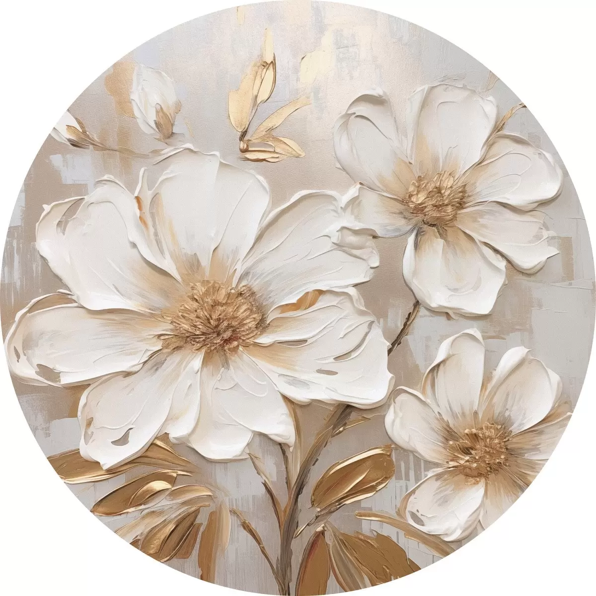 Picturi rotunde Flori texturate pe un fundal deschis, cu nuanțe calde Nr r46166