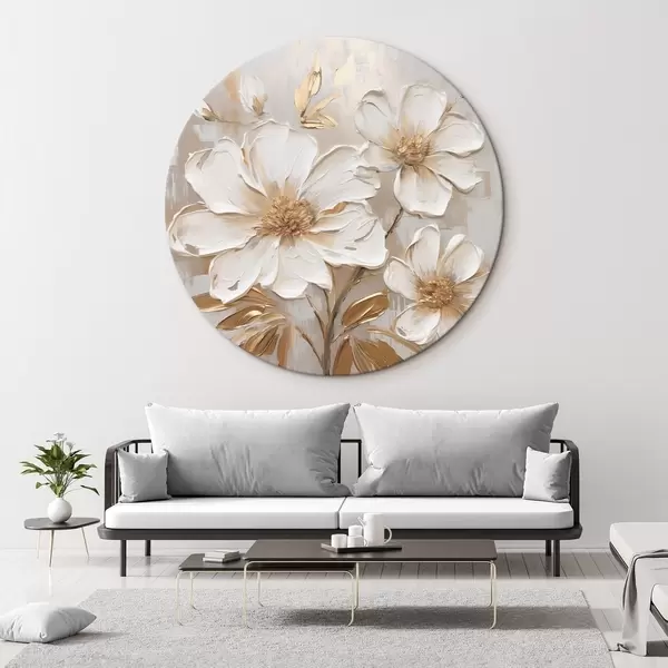 Picturi rotunde Flori texturate pe un fundal deschis, cu nuanțe calde Nr r46166