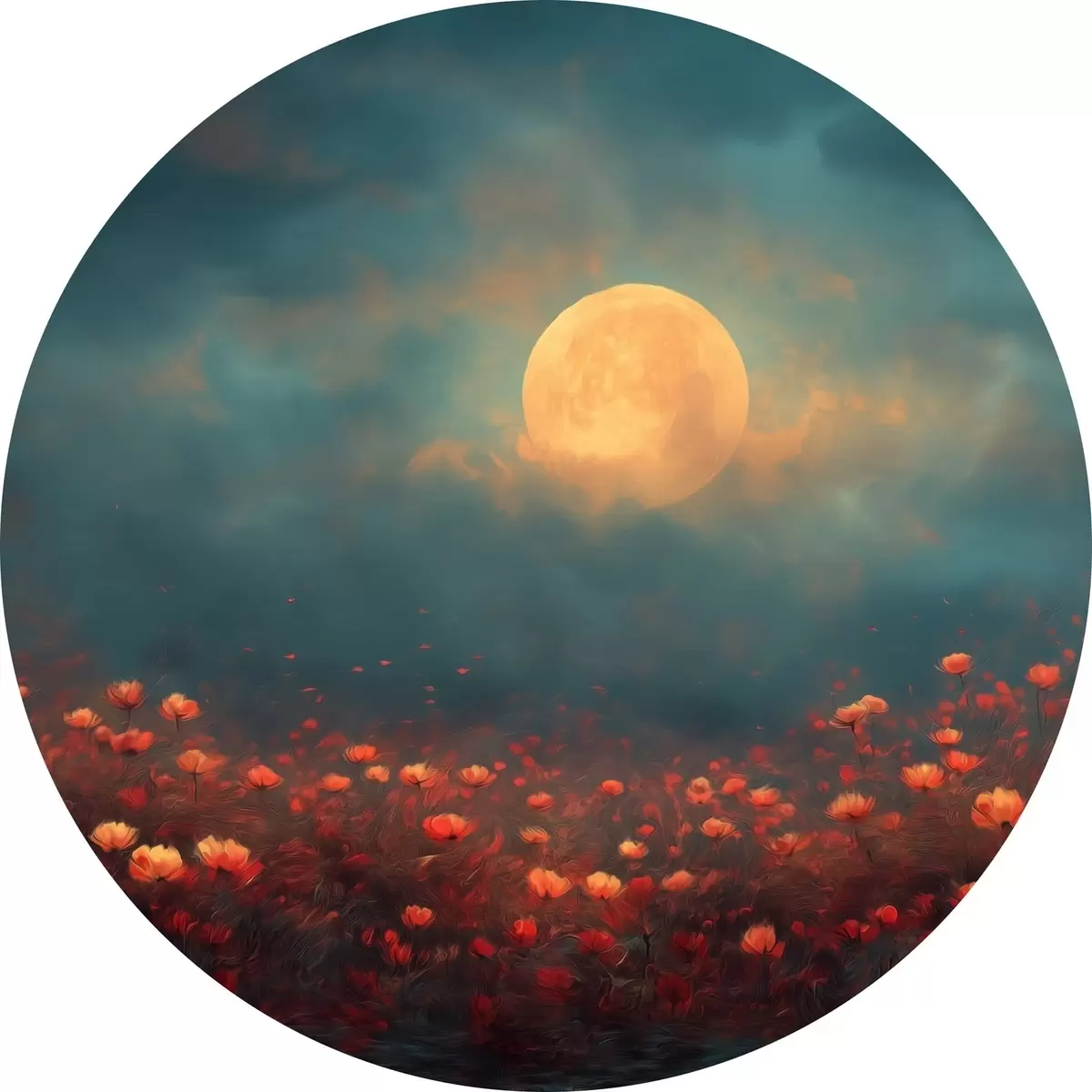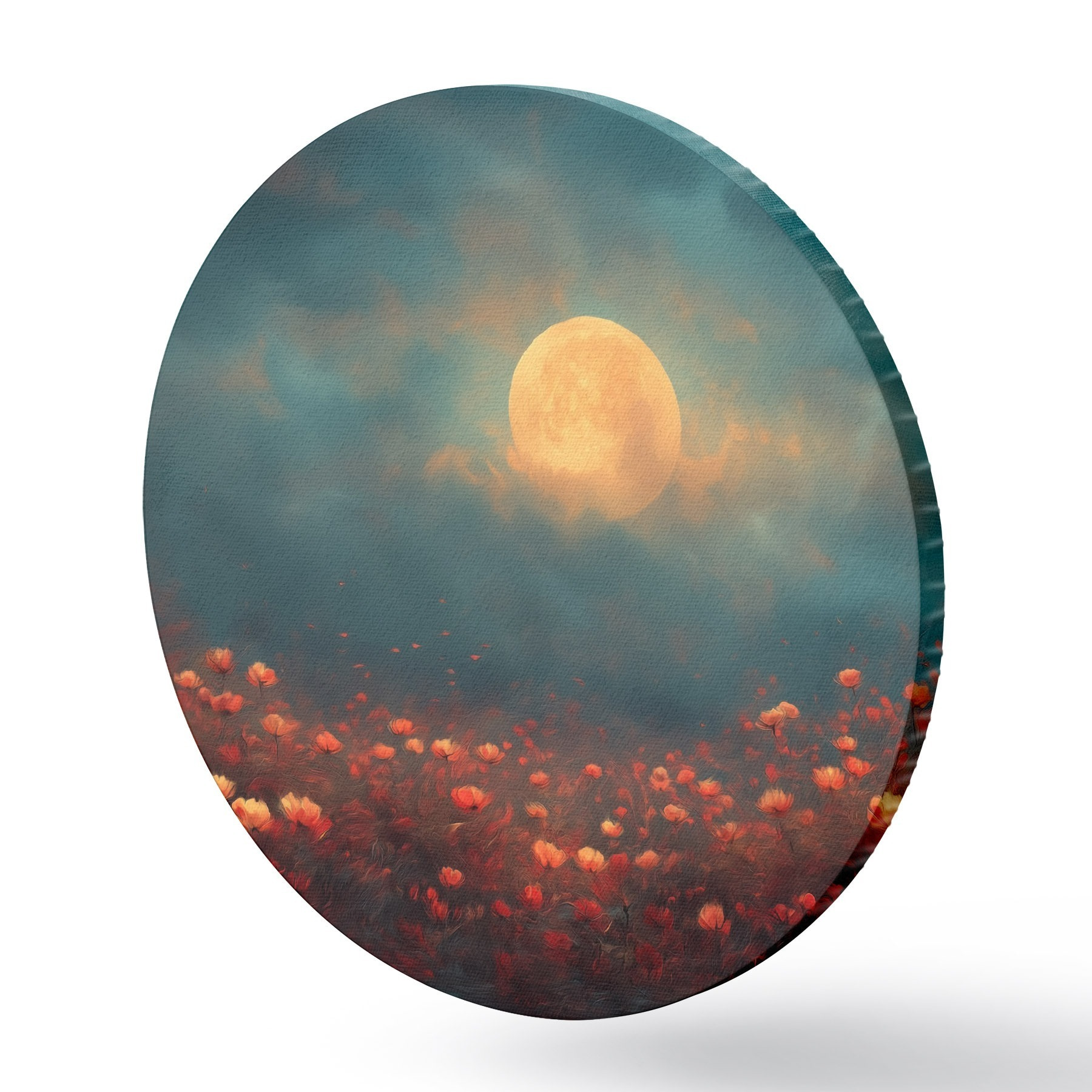 Picturi rotunde Luna deasupra unui câmp de flori roșii într-un cer cețos de seară r46167