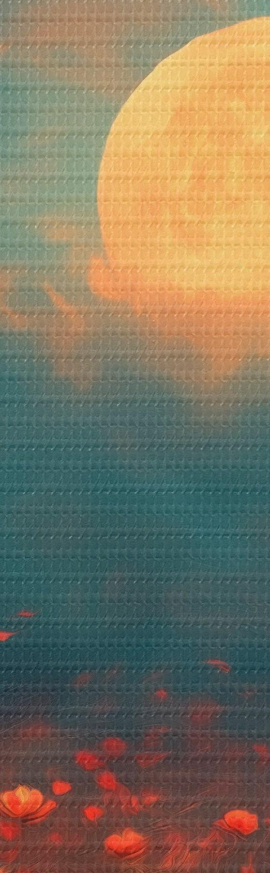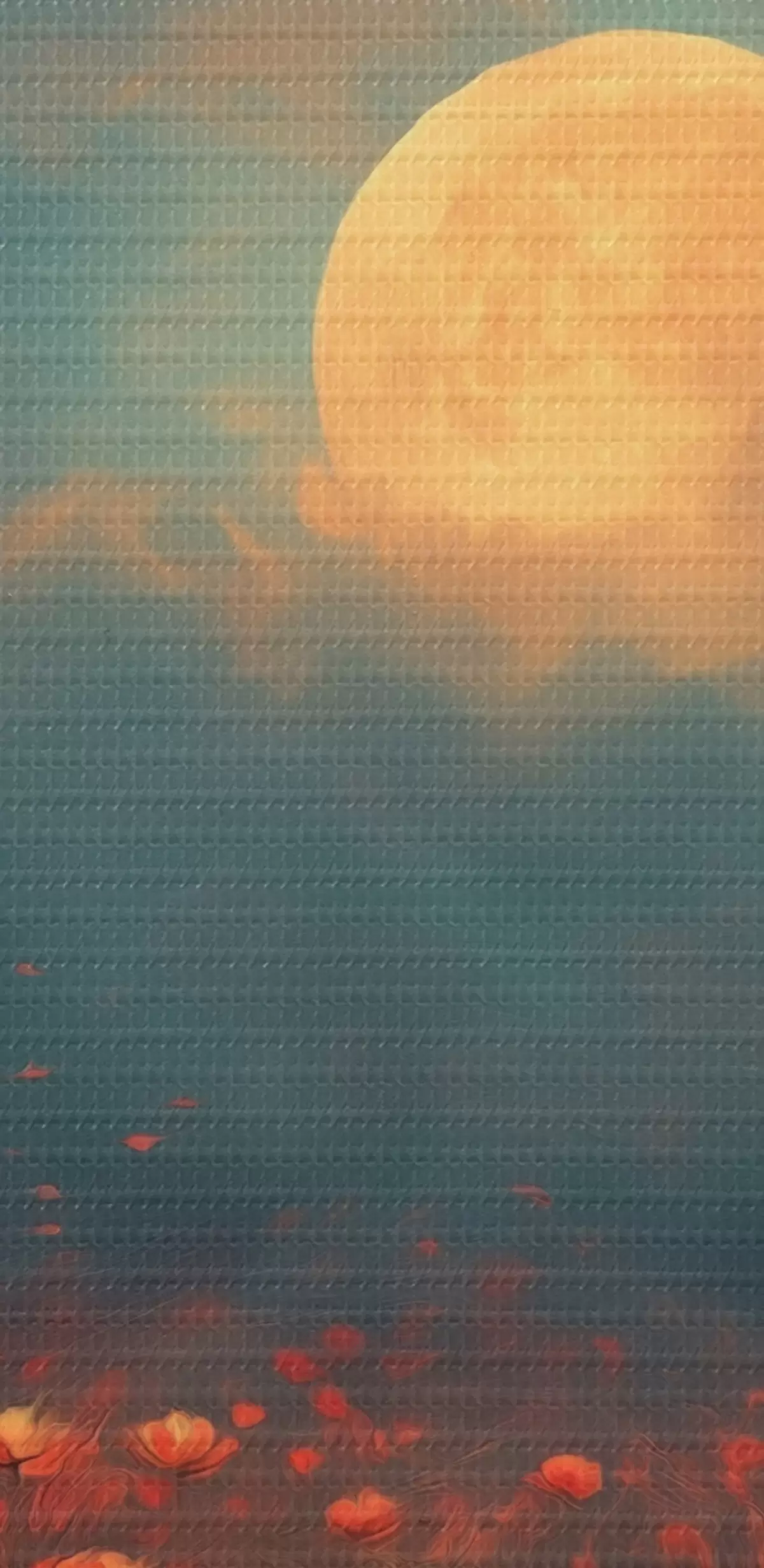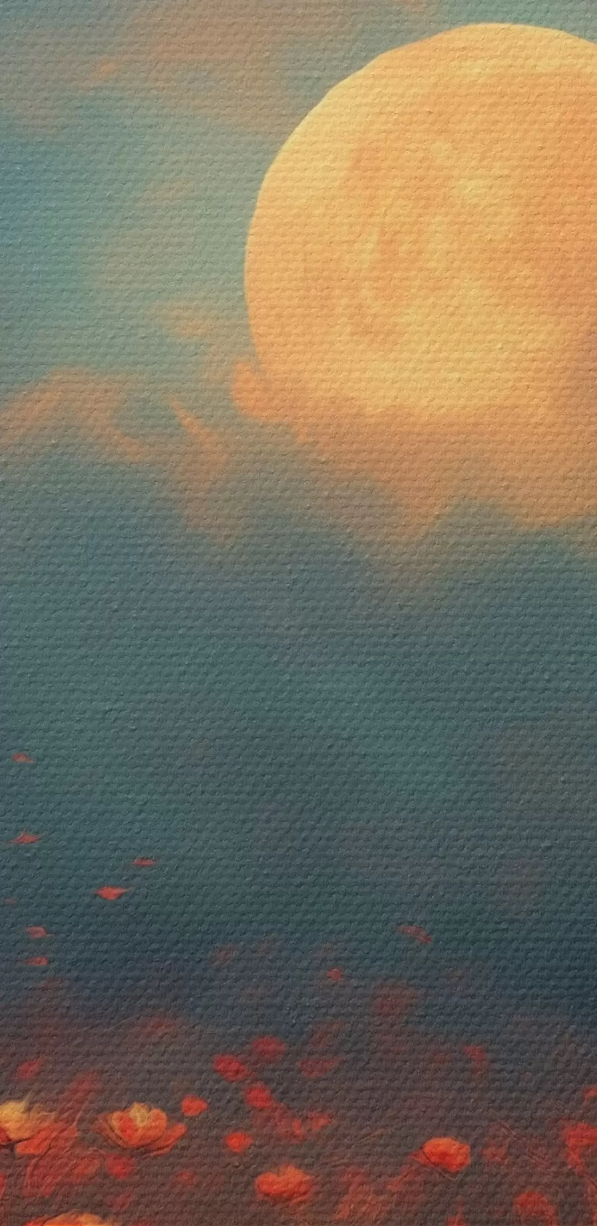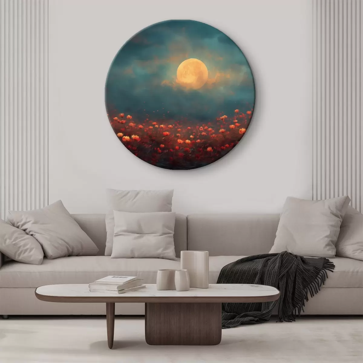 Picturi rotunde Luna deasupra unui câmp de flori roșii într-un cer cețos de seară Nr r46167