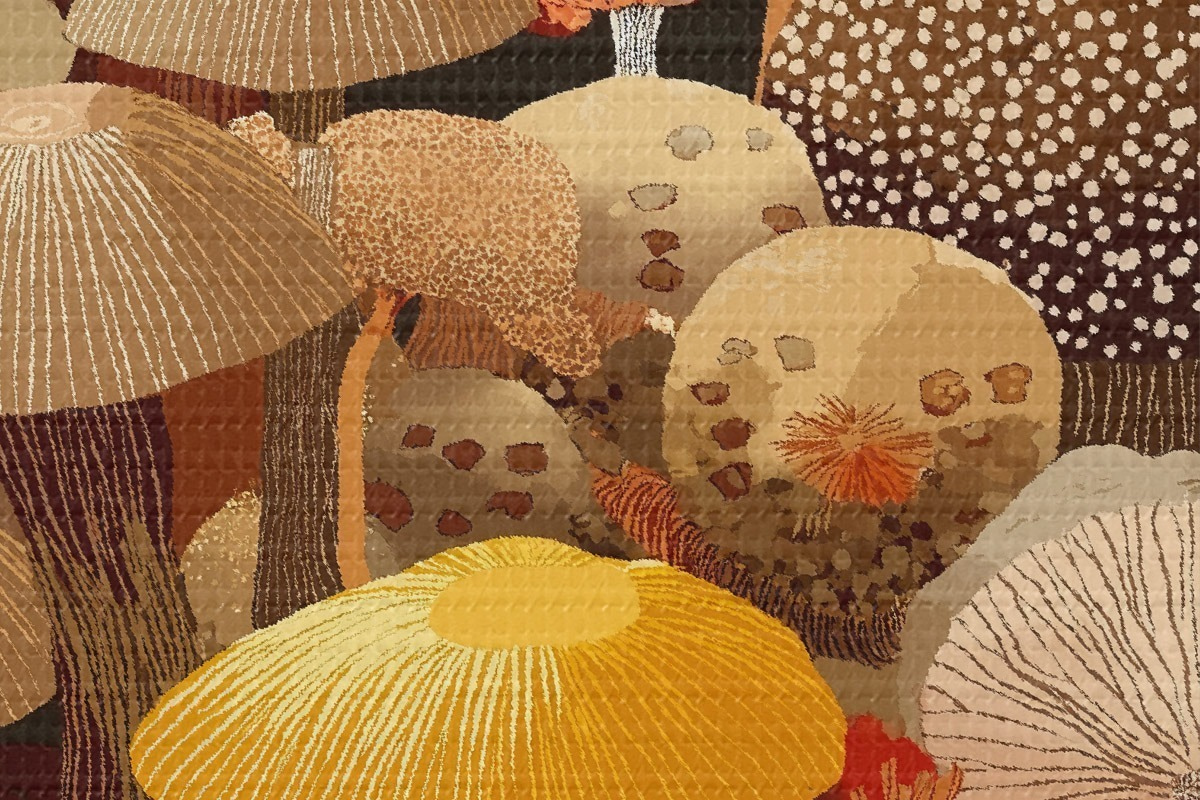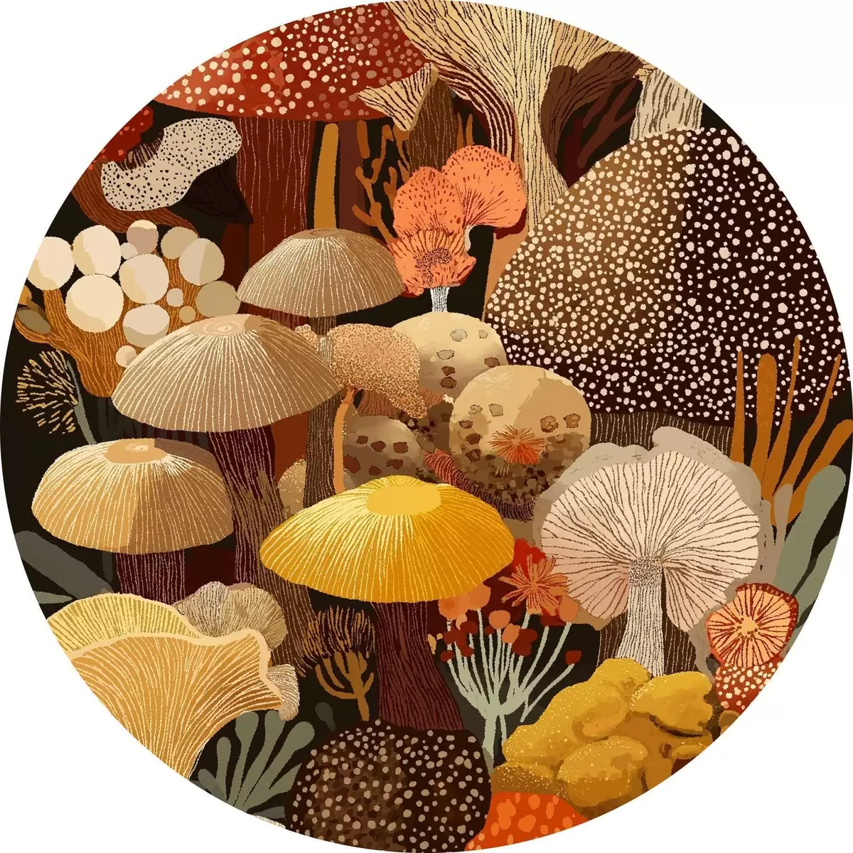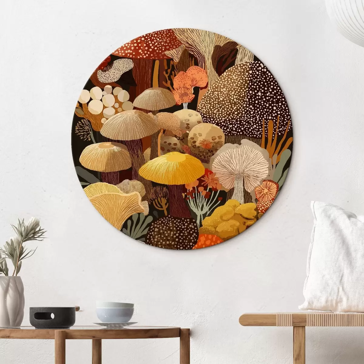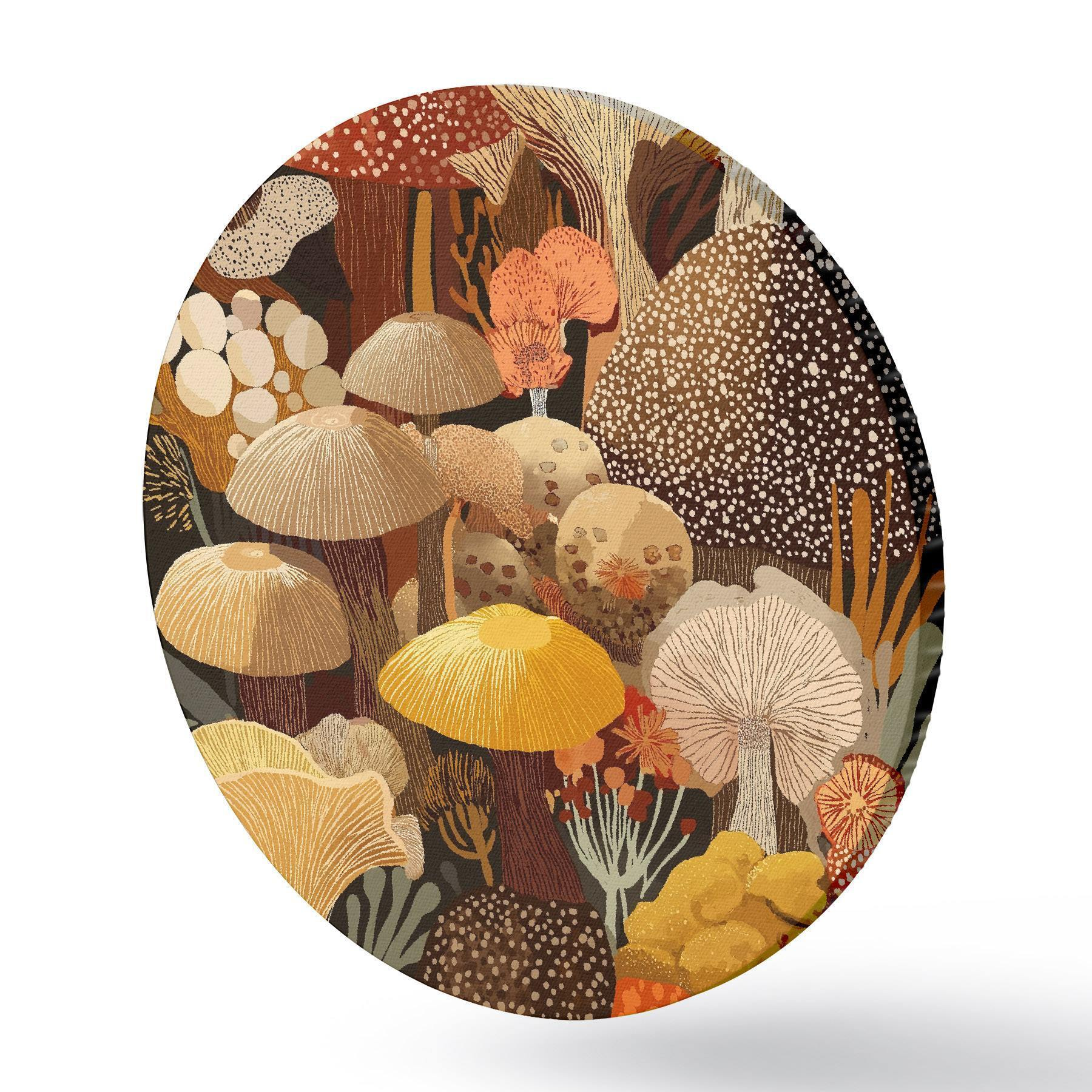 Picturi rotunde Compoziție cu diverse ciuperci de pădure în tonuri calde r46170