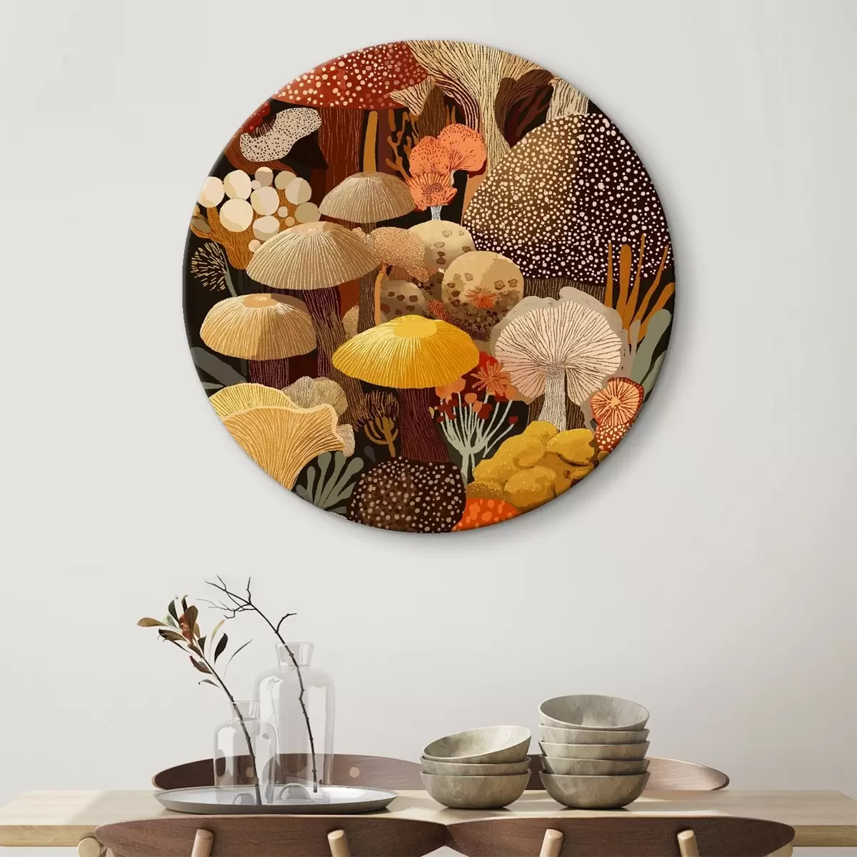 Picturi rotunde Compoziție cu diverse ciuperci de pădure în tonuri calde Nr r46170