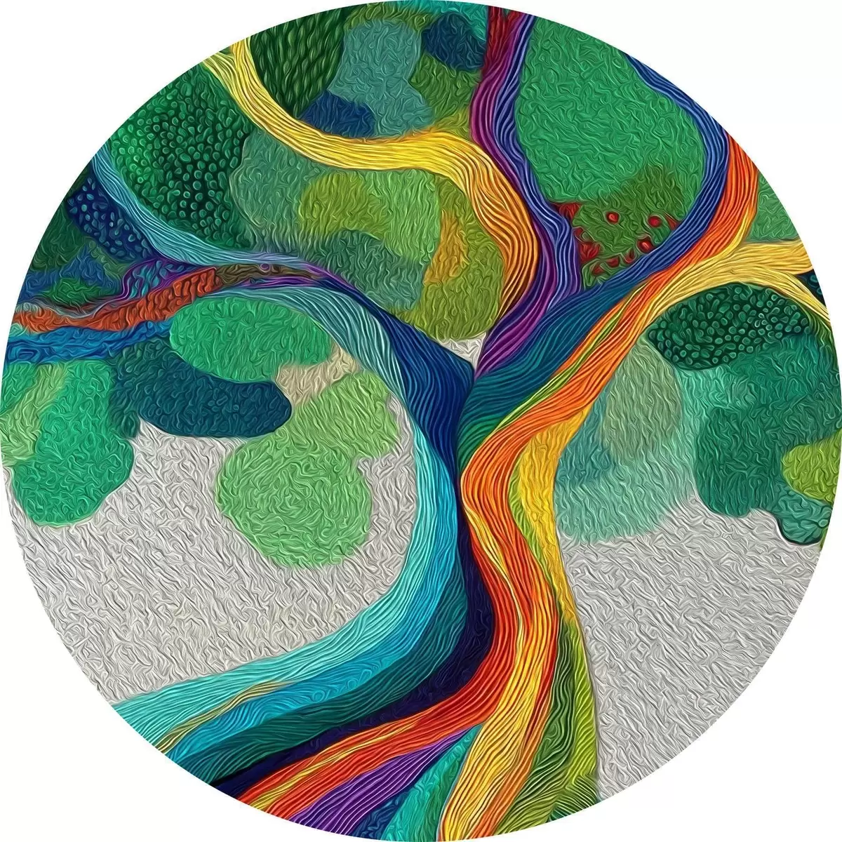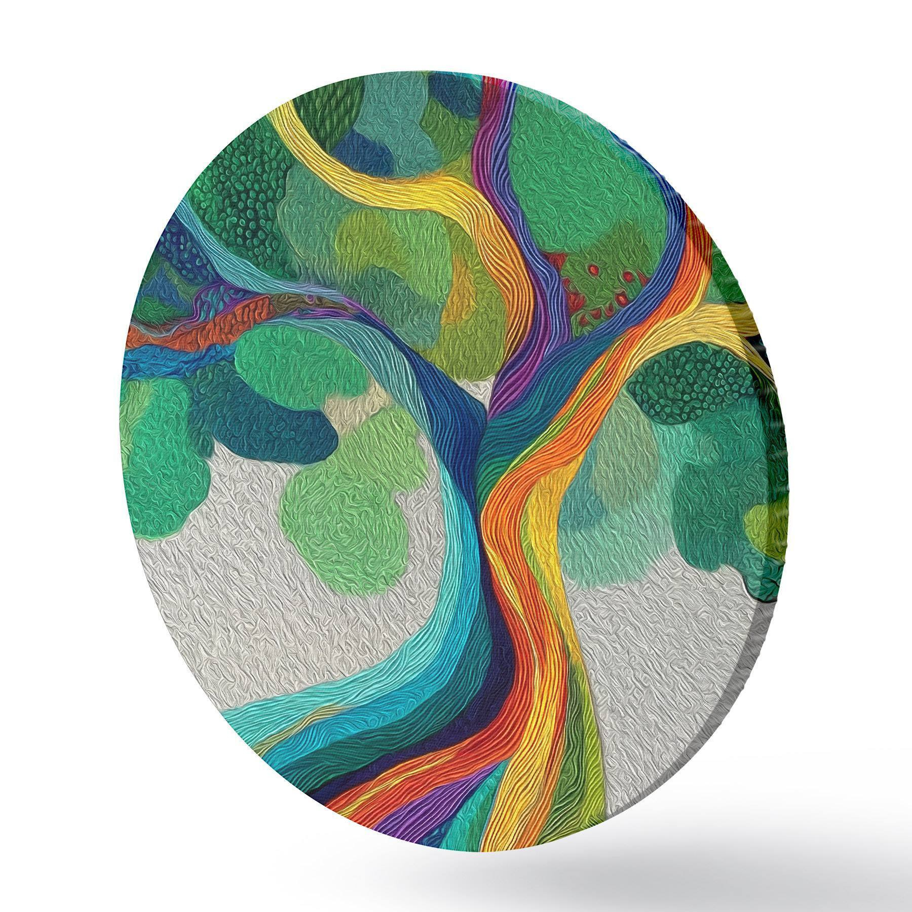 Picturi rotunde Copac cu ramuri curcubeu pe fundal verde Nr r46173