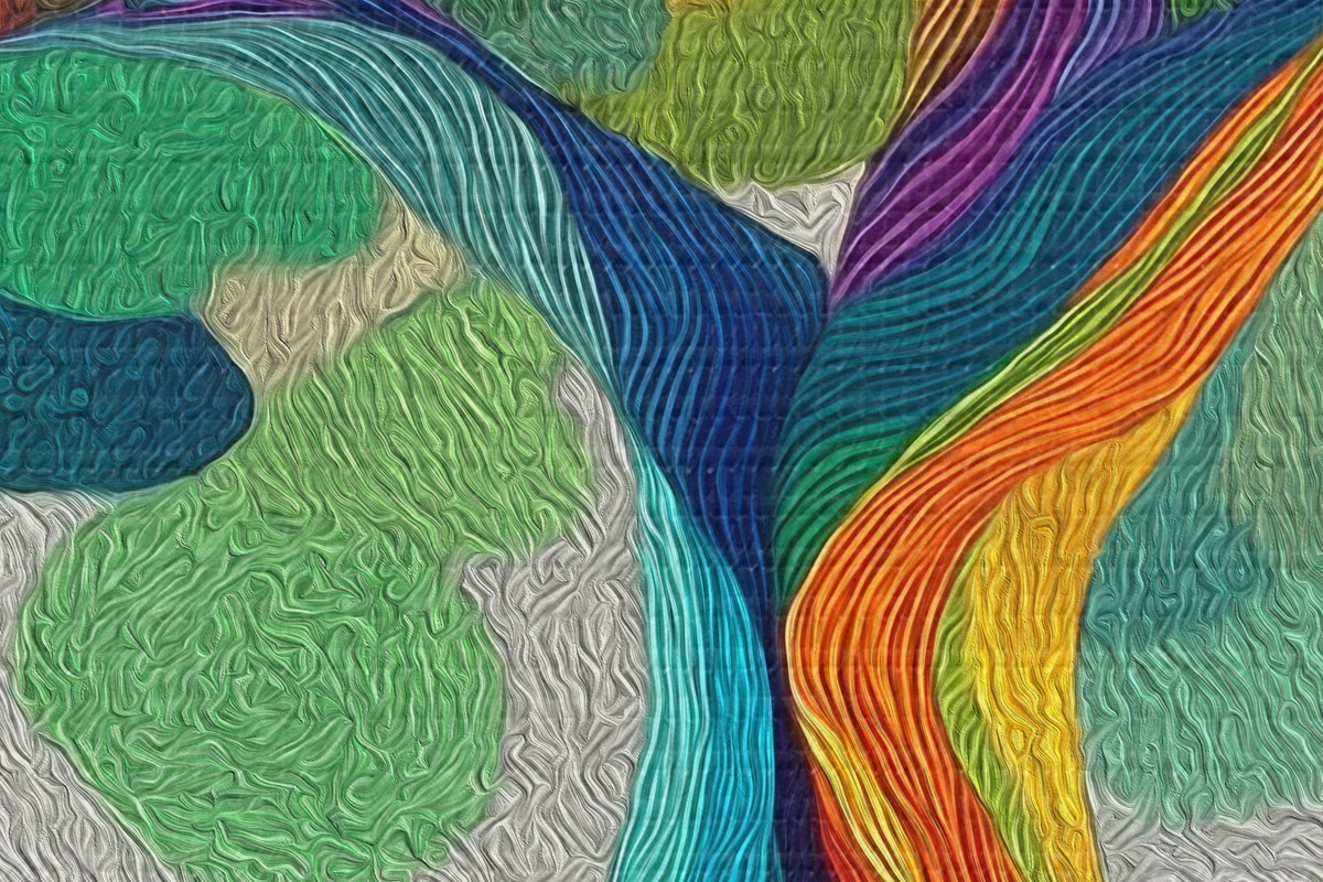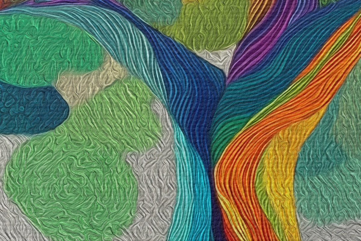 Picturi rotunde Copac cu ramuri curcubeu pe fundal verde r46173