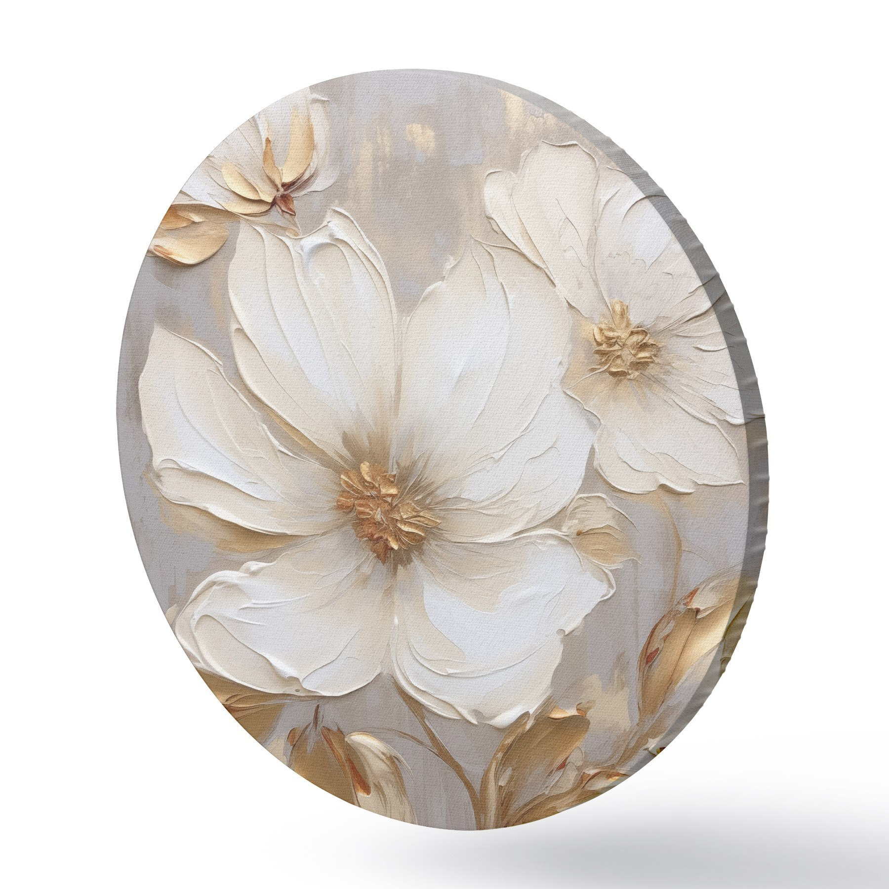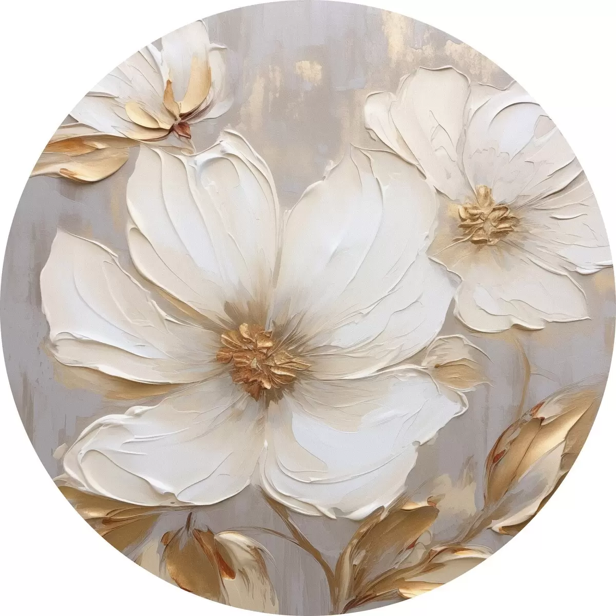 Picturi rotunde Flori mari texturate cu tușe de vopsea în paletă caldă Nr r46176