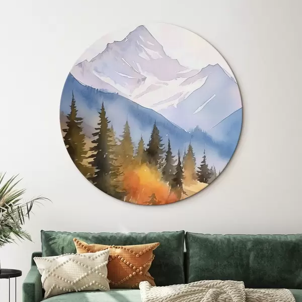 Picturi rotunde Peisaj montan de toamnă cu un râu și o pădure plină de viață Nr r46187