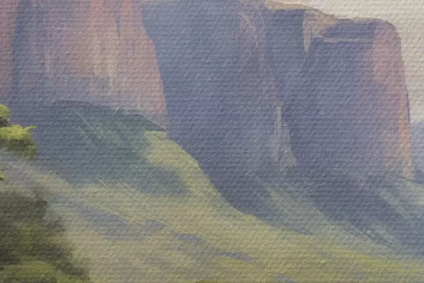 Țesătura fină a firelor de pe această pânză seamănă cu suprafața pânzelor artiștilor profesioniști.